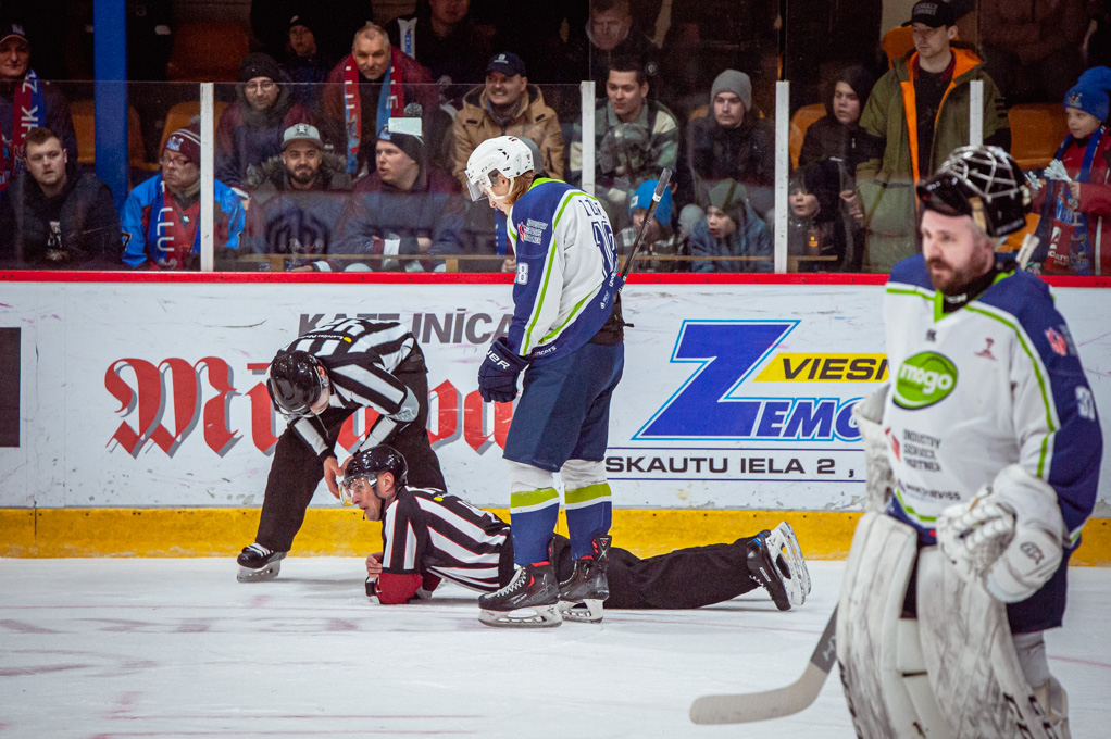 Trešās trešdaļas sākumā jelgavnieku disciplīna negaidīti salūza vai, kā teica galvenais treneris Artis Ābols: “Sakām darīt muļķības.” Sākumā uzbrucējs Ričards Bernhards saņēma noraidījumu uz 5 minūtēm, bet izturot šo garo laiku, vēl divu minušo noraidījumu saņēma Kristaps Roķis.