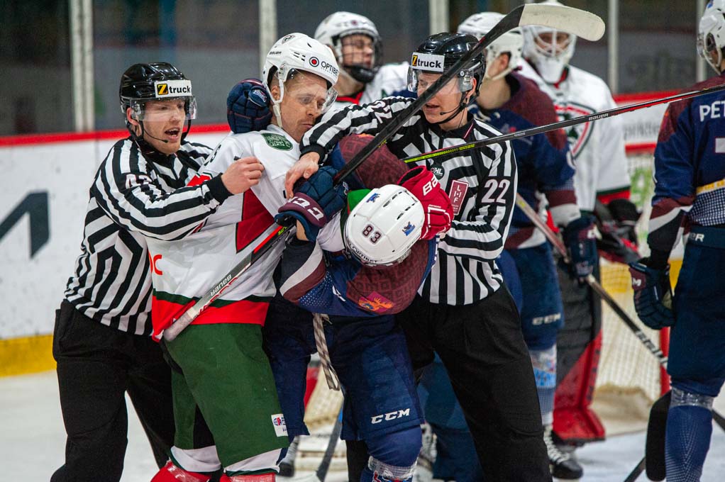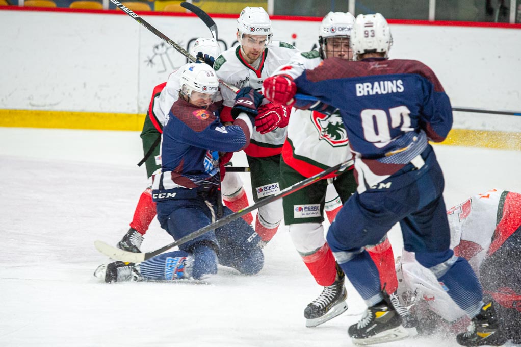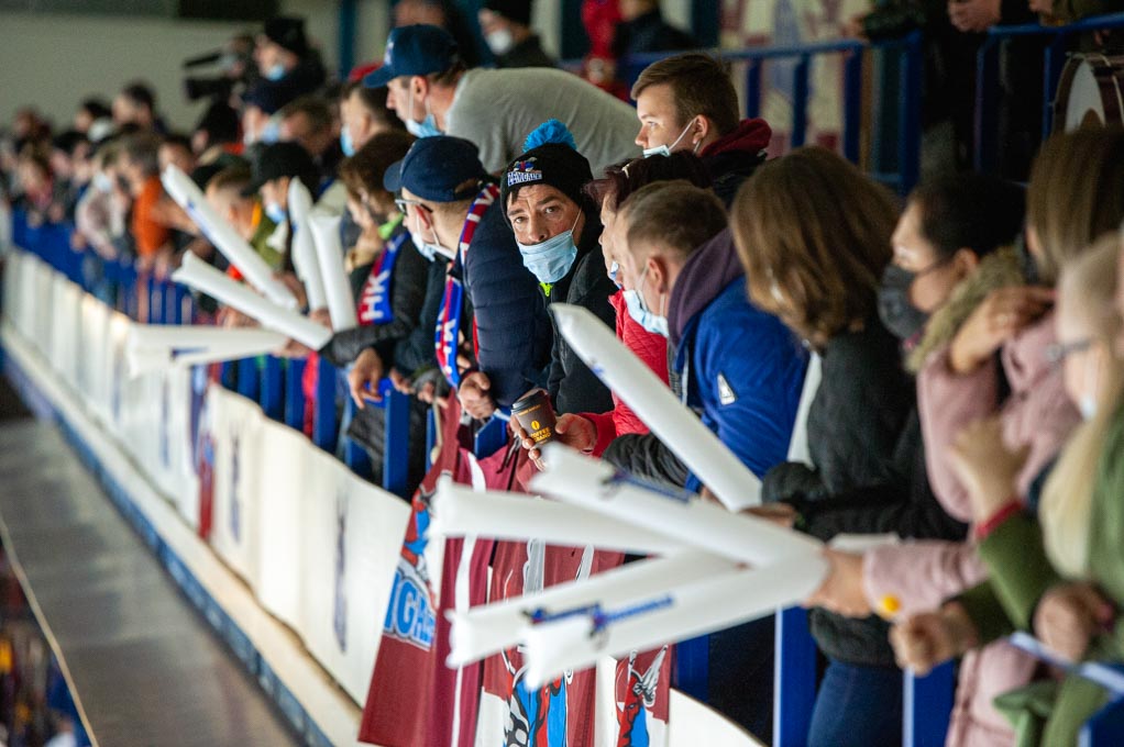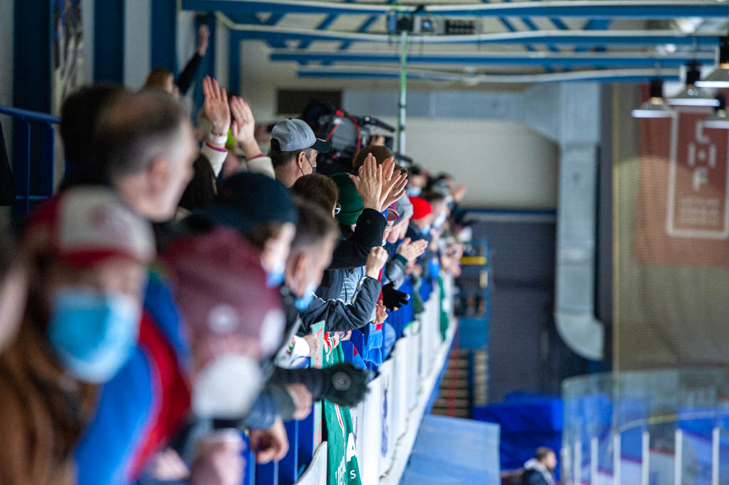 “Optibet” hokeja līgas izslēgšanas kārtas pusfināla pirmā spēle starp HK “Zemgale/LLU” un HK “Liepāja” Jelgavas ledus hallē 2022. gada 19. martā | Foto: Ruslans Antropovs