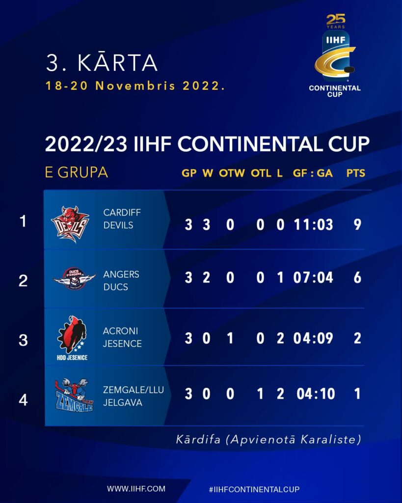 “Zemgale/LLU” piekāpās visās Starptautiskās hokeja federācijas Kontinentālā kausa izcīņas 3. kārtas “E” grupā un nekvalificējas startam finālā, kas tiks aizvadīts janvārī.