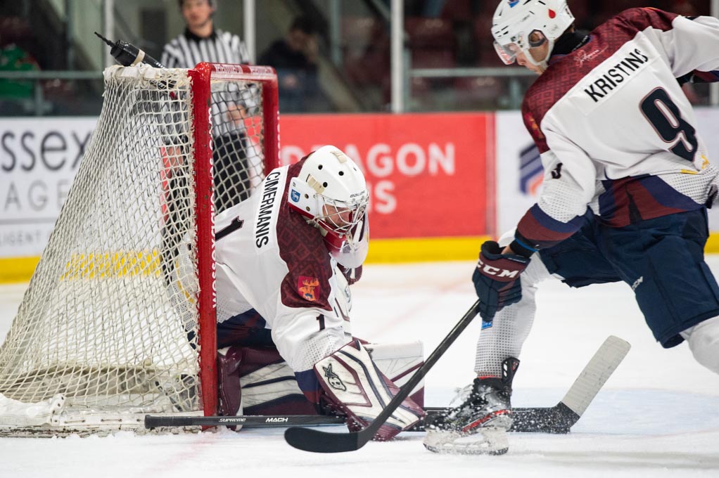 Otrajā trešdaļā galvenais treneris Artis Ābols nomainīja vārtsargu Rihardu Cimermani pret Mariusu Bajarunu-Galēju. Diemžēl jau piektajā minūtē Džastina Krendela raidītā ripa atsitās pret aizsarga slidu un ielidoja Mariusa sargātajos vārtos – 1:4.