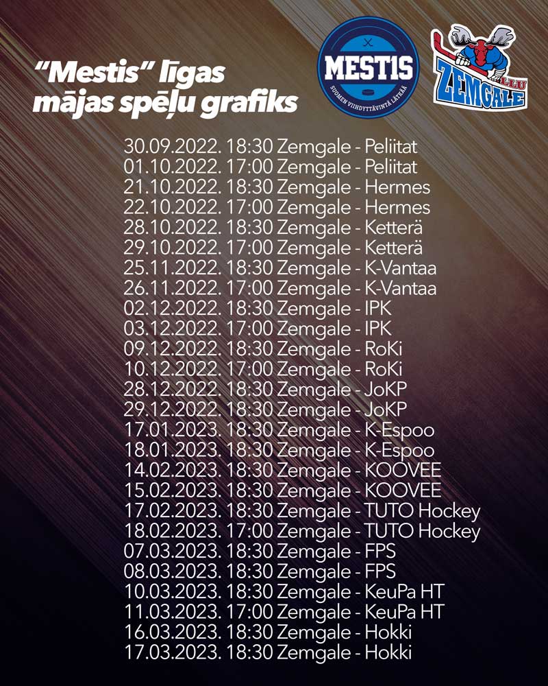 Oficiālais 2022./2023. gada “Mestis” čempionāta kalendārs jau ir publicēts šeit. Spēļu kalendārs un izspēles formāts būs atrodams līgas oficiālajā mājaslapā – www.mestis.fi.