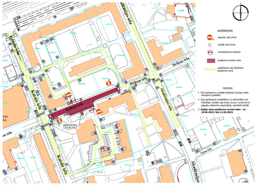 No 10. jūnija pulksten 8 līdz 11. jūnija pulksten 23 slēgta satiksme Driksas ielā, posmā no Katoļu ielas līdz Akadēmijas ielai, informē “Pilsētsaimniecība”.