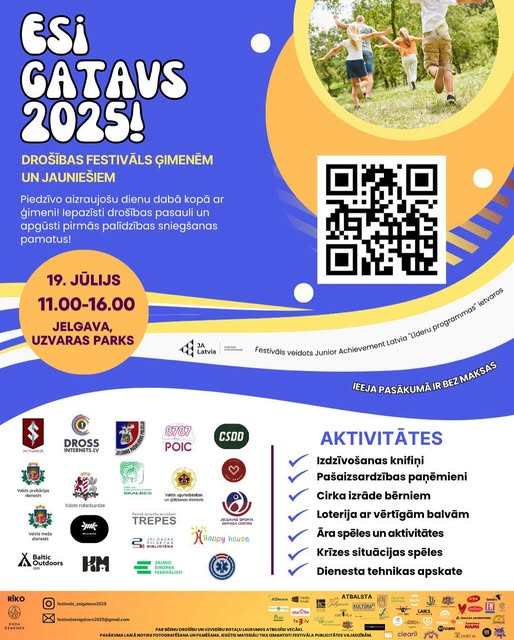 19. jūlijā no pulksten 11 līdz 16 Uzvaras parkā notiks ģimeņu un jauniešu drošības festivāls “Esi gatavs 2025!”. Vairāk nekā 20 organizāciju sarūpētās praktiskās darbnīcas, lekcijas, paraugdemonstrējumi un spēles aicinās apmeklētājus izzināt drošības tēmu, informē pašvaldība.