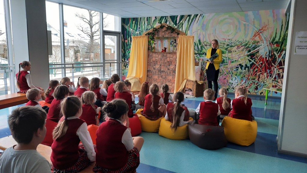 Pēcpusdienā bibliotēka pie sevis uzņēma kolēģus no citām pilsētas skolām un Jelgavas Pilsētas bibliotēkas, lai dalītos pieredzē un pārrunātu aktuālos jautājumus.