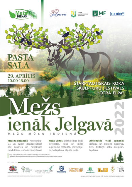 Latvijas Lauksaimniecības universitātes (LLU) Meža fakultāte sadarbībā ar nozares organizācijām un uzņēmumiem “Meža dienu 2022” laikā 29. aprīlī no pulksten 10 līdz 18 Pasta salā jau ceturto reizi organizēs pasākumu “Mežs ienāk Jelgavā” ar plašu programmu gan lieliem, gan maziem. Šā gada tēma – “Mežs mūsu ikdienā”. Līdz 19. aprīlim tiek gaidīti dalībnieku pieteikumi, informē LLU.