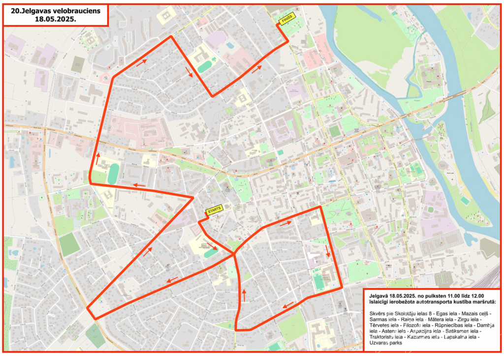 Velobraukšanas entuziasti 18. maijā aicināti piedalīties jau 20. Jelgavas velobraucienā, informē Jelgavas Sabiedriskais centrs.