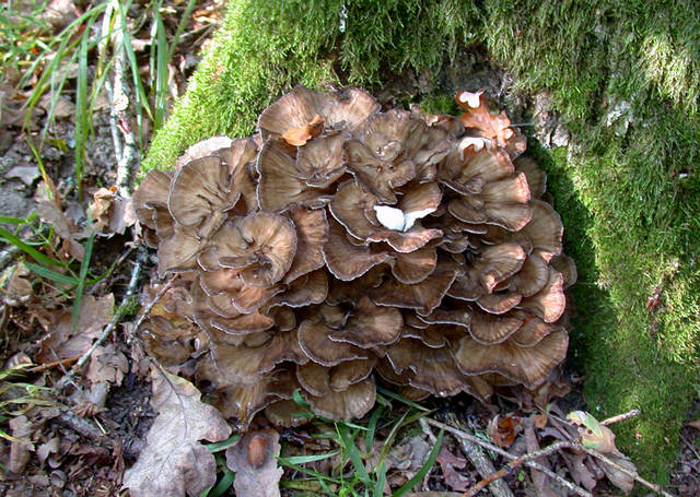Augļķermeņi viengadīgi, veido lielu čemuru no daudzām mēlesveida cepurītēm, kuru kātiņi atiet no kopējas pamatnes. Visa augļķermeņa diametrs līdz 50 (60) centimetri (cm), svars – pat 20 kilogrami, atsevišķas cepurītes platums līdz 4-8 cm, biezums līdz 1 cm. Virspuse cepurītēm sākumā gaiši pelēkbrūna, vēlāk kļūst tumšāka līdz pat tumši brūnai veciem eksemplāriem, nedaudz joslaina.