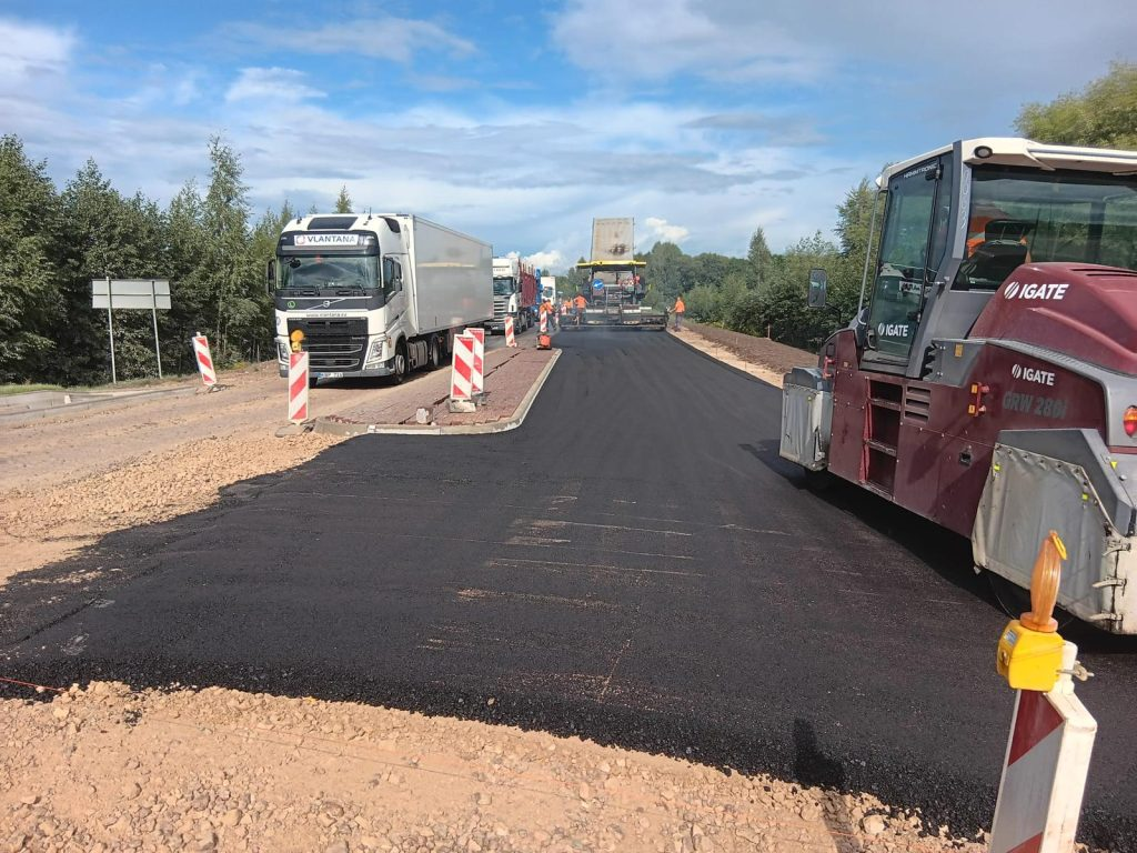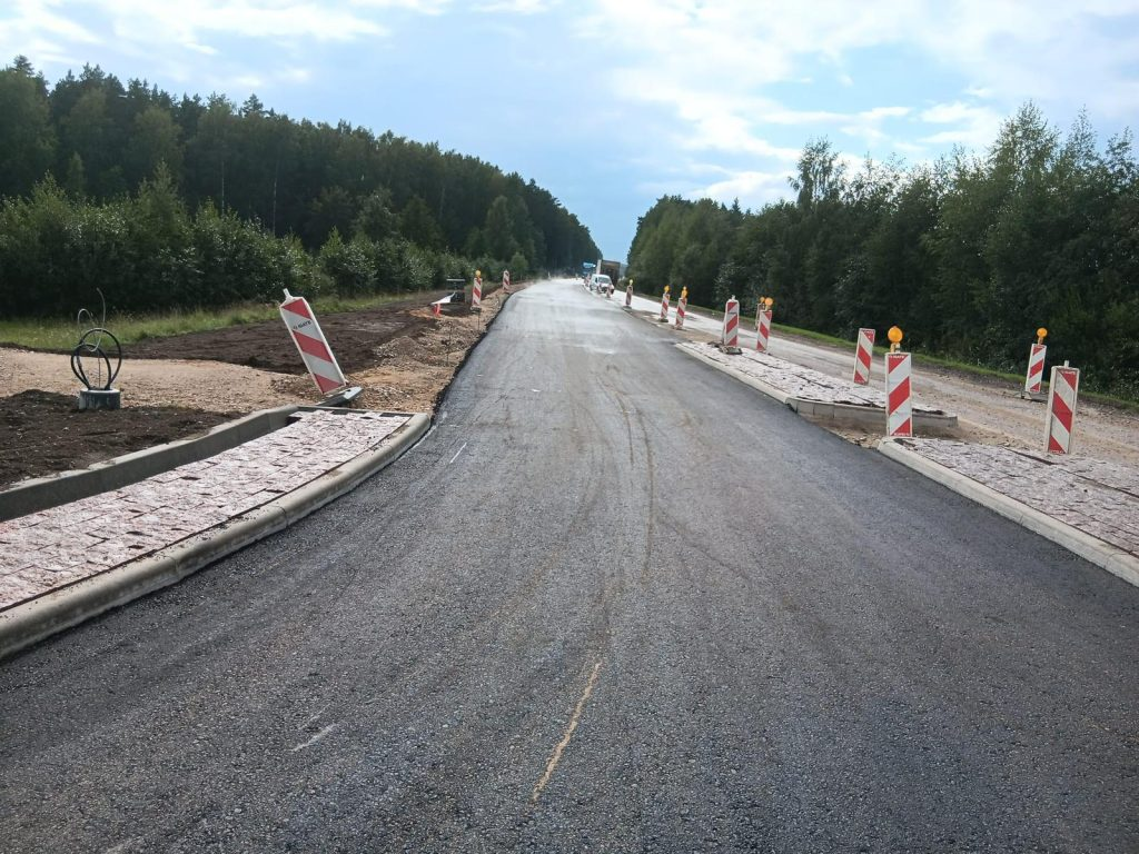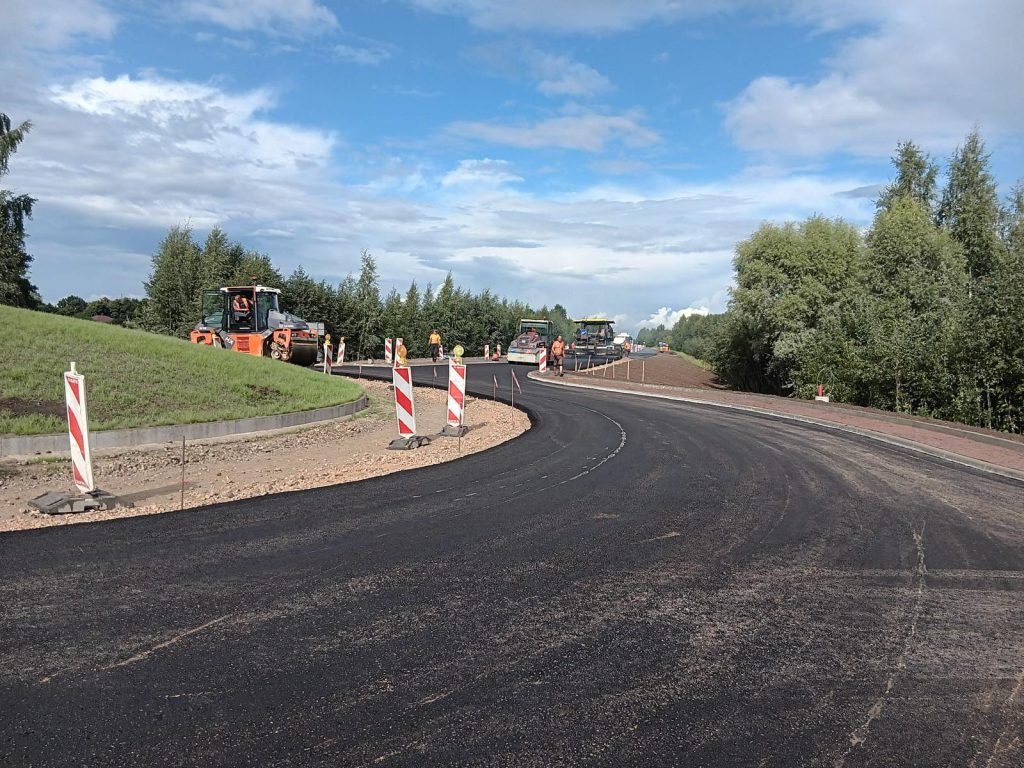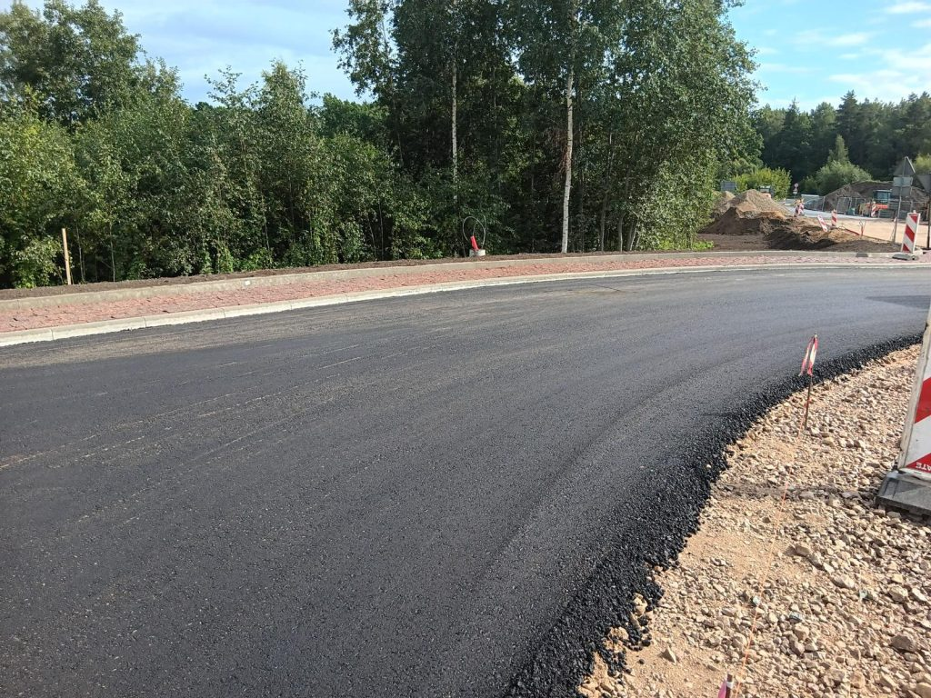 Aizsargu ielas rotācijas aplī un Kārniņu ceļā sāk ieklāt asfaltu