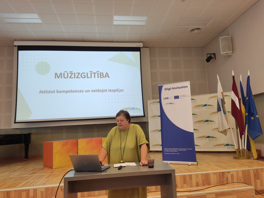 Jeļena Žoide prezentēja mūžizglītības aktualitātes Jelgavas novadā, uzsverot pieaugušo izglītības nozīmi digitālo, pilsonisko, uzņēmējdarbības un zaļo prasmju attīstībā. Īpaša uzmanība tika pievērsta aktivitāšu pieejamībai pagastos un Zaļenieku komerciālās un amatniecības vidusskolas attīstībai kā pieaugušo izglītības centram.