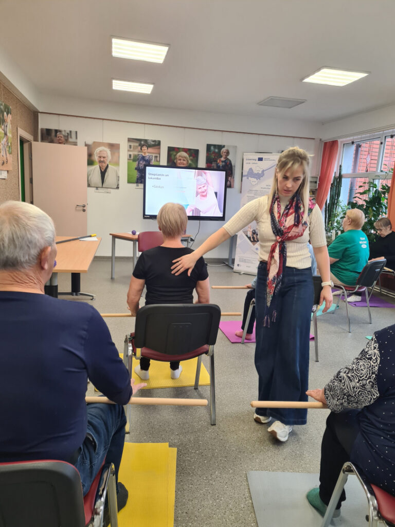 Nodarbību mērķis bija veicināt aktīvu un veselīgu novecošanu, vienlaikus sniedzot praktiskas un ikdienā viegli izmantojamas iemaņas drošai kustībai un labsajūtai.