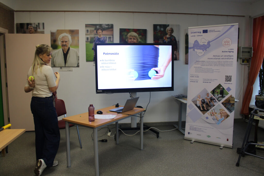 Nodarbības notika projekta “ActiveAging” ietvaros. Projekta kopējais budžets ir 619 503,60 eiro, tostarp Eiropas Reģionālās attīstības fonda līdzfinansējums ir 495 602,88 eiro.