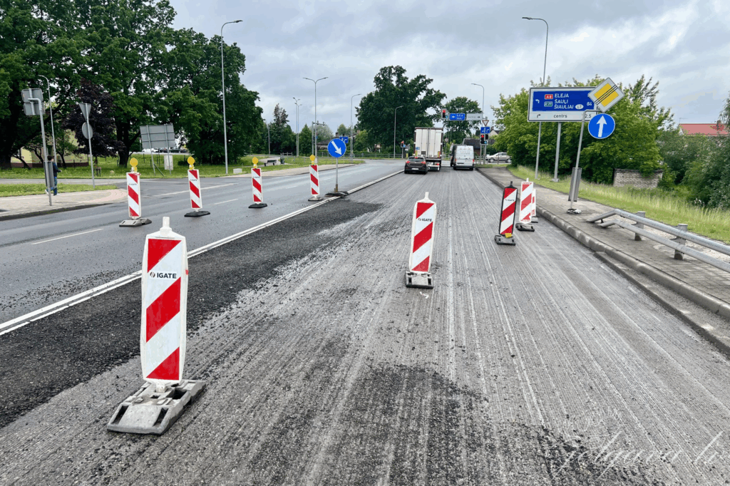 Būvdarbu laikā satiksmi organizē četri satiksmes regulētāji – viens uz tilta, trīs Lietuvas šosejas un Miera ielas krustojumā.