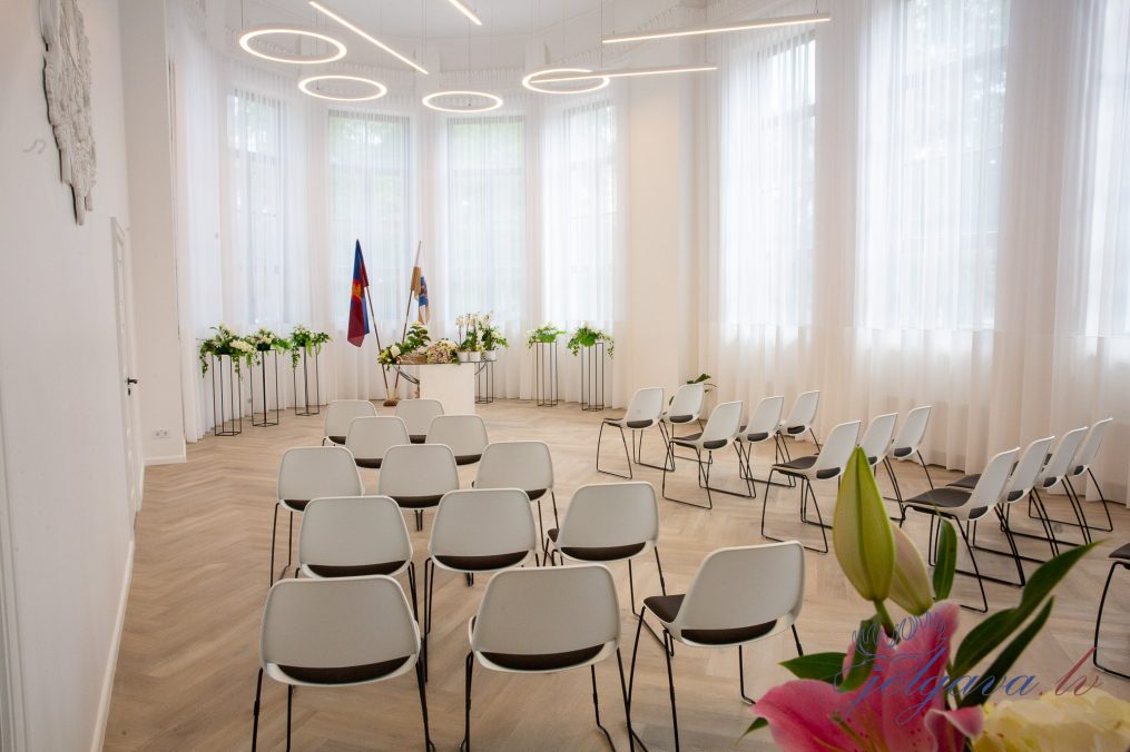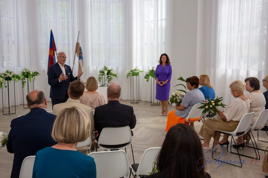 “Process, lai tiktu līdz šai skaistajai ēkai, nebija viegls, jo sākotnējais būvnieks nepildīja saistības, un pagājušajā gadā mums nācās lauzt līgumu. Tas bija iemesls, kāpēc darbi aizkavējās un ēka nebija gatava noteiktajā termiņā. Taču pašvaldībai svarīgāk par termiņu ir kvalitatīvi paveikts darbs. Mazliet vēlāk nekā cerēts, bet esam ieguvuši skaistu ēku, kurā tiks slēgtas laulības, reģistrēti jaundzimušie. Patiesi ceru, ka šeit augs gan reģistrēto laulību skaits, gan arī jaundzimušo reģistrācijas statistika. Lai jaunās telpas labi kalpo!” atklāšanas pasākumā vēlēja Jelgavas domes priekšsēdētājs Andris Rāviņš, pateicoties katram, kurš bijis iesaistīts šajā projektā, lai no idejas tiktu līdz jaunam objektam.