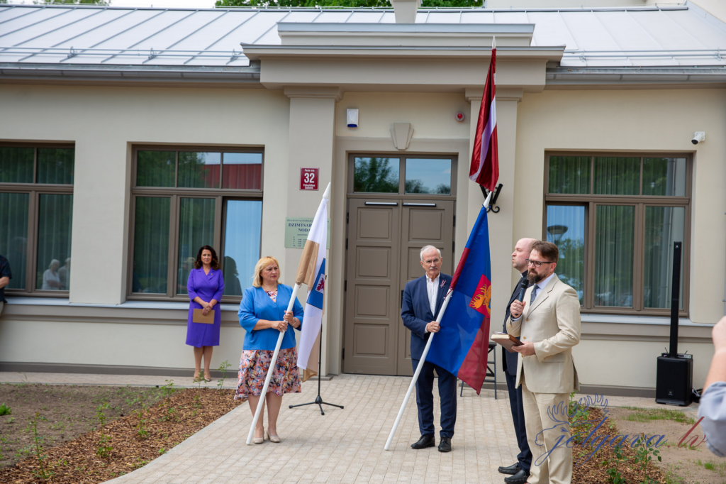 Svinīgajā pasākumā savu svētību jaunajai ēkai deva garīdznieki – Jelgavas Baptistu draudzes mācītājs Mārcis Zīverts un Jelgavas Svētās Annas prokatedrāles mācītājs Valdis Vircavs –, iesvētot Jelgavas pilsētas un Jelgavas novada karogus, kas šodien pacelti pie jaunās ēkas.