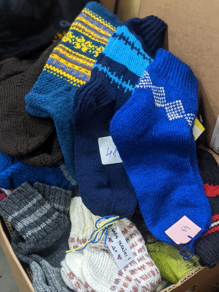 Biedrības “Tavi draugi” pārstāve Beāte Bēvalde norāda, ka pērn rudenī un ziemā biedrības noliktava Ventspils ielā 50, Rīgā, kļuva par tranzīta punktu tūkstošiem adījumu no visas Latvijas ceļā uz Ukrainu, kur tie tika nogādāti ar biedrības kravām vai citu organizāciju palīdzību. Patlaban tiek saņemti arvien jauni pieprasījumi pēc adījumiem, bet noliktavā to vairs vairs nav.