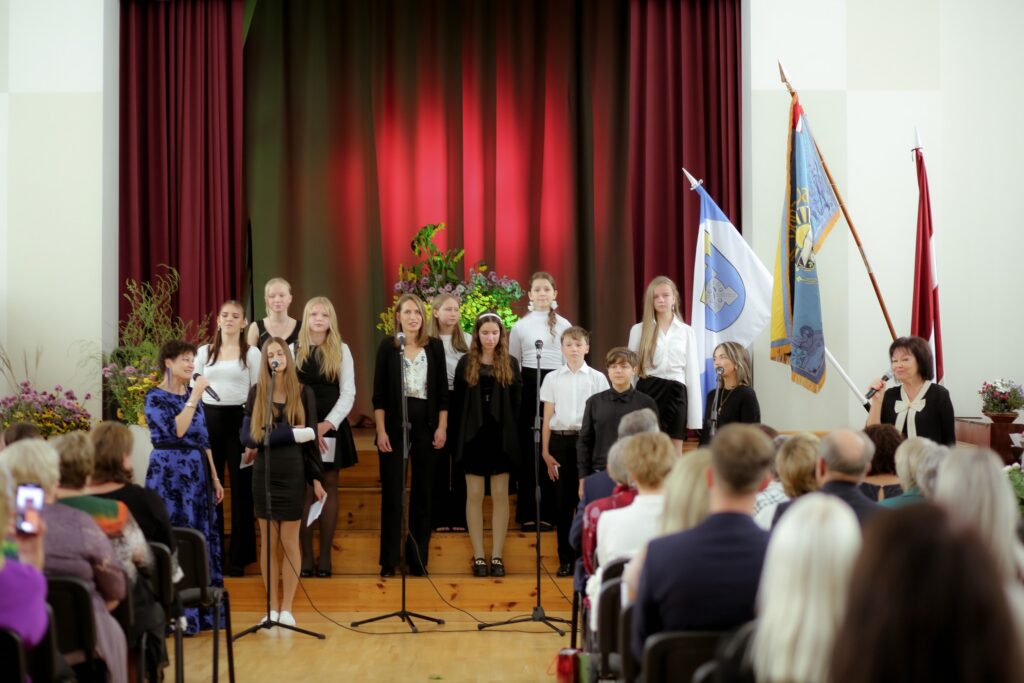 Svētku koncertā uz skatuves kāpa gan esošie skolēni, gan skolas absolventi, bet bijušie skolas direktori – Astrīda Gerharde, Dace Reinika, Antra Salna un Aldis Tisenkopfs – dalījās atmiņu stāstos.