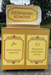 Būs arī ziedojumu kumode, kur varēs atnest un ielikt ziedotās mantas, kas vēl var noderēt citiem cilvēkiem. Lūgums nest jaunas vai mazlietotas, bet nebojātas un tīras mantas (sadzīves lietas traukus utt.), kuras var lietot trūkumā nonākušie cilvēki.