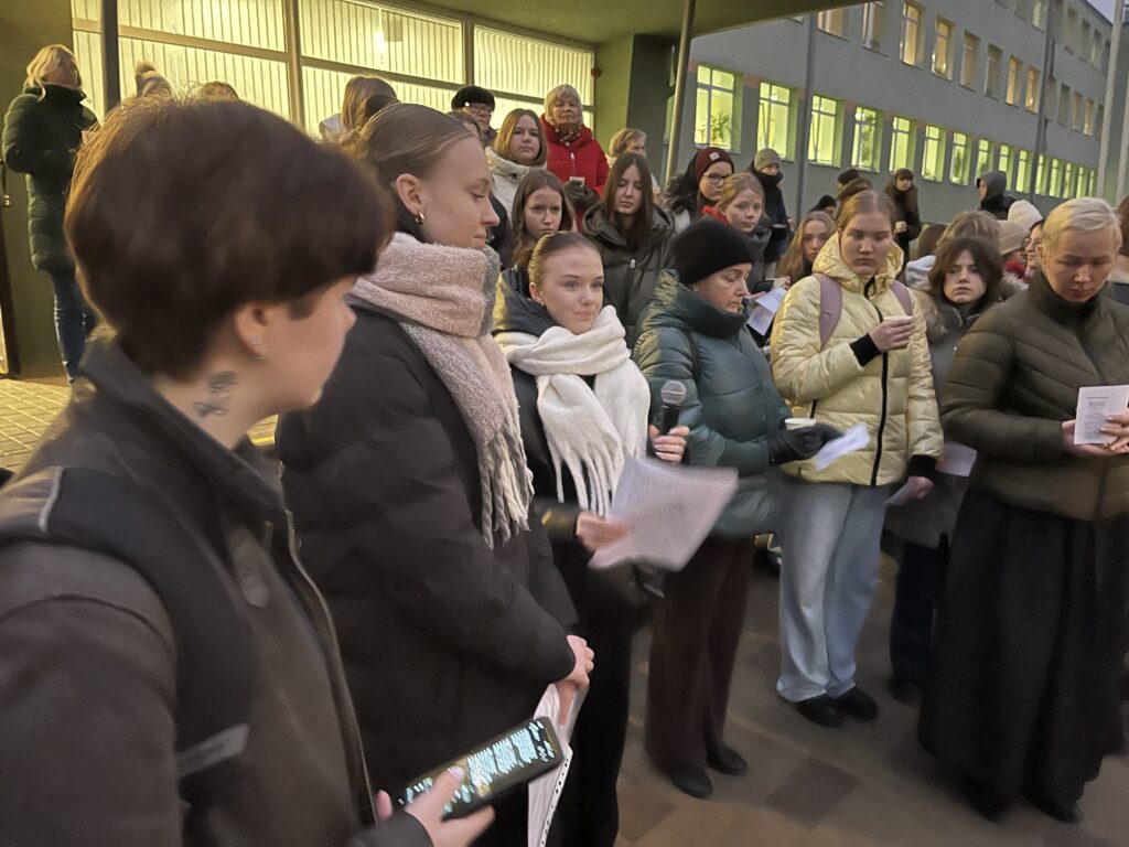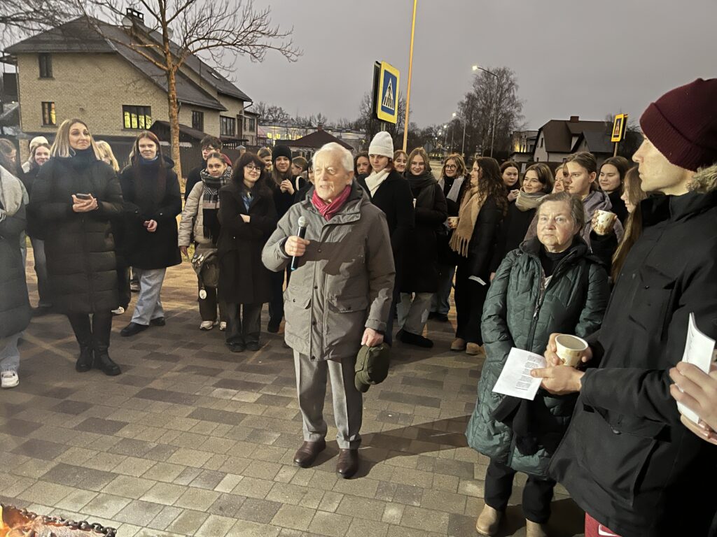 Pasākumā runāja ari ģimnāzijas audzēknes Justīne Intlere un Samanta Žebrovska. Viņas stāstīja par to, kā barikādes atceras viņu tuvinieki. Ap ugunskuru skanēja dziesmas: “Div‘ dūjiņas gaisā skrēja”, “Rītā agri saule lēca”, “Daugav`s abas malas mūžam nesadalās”.