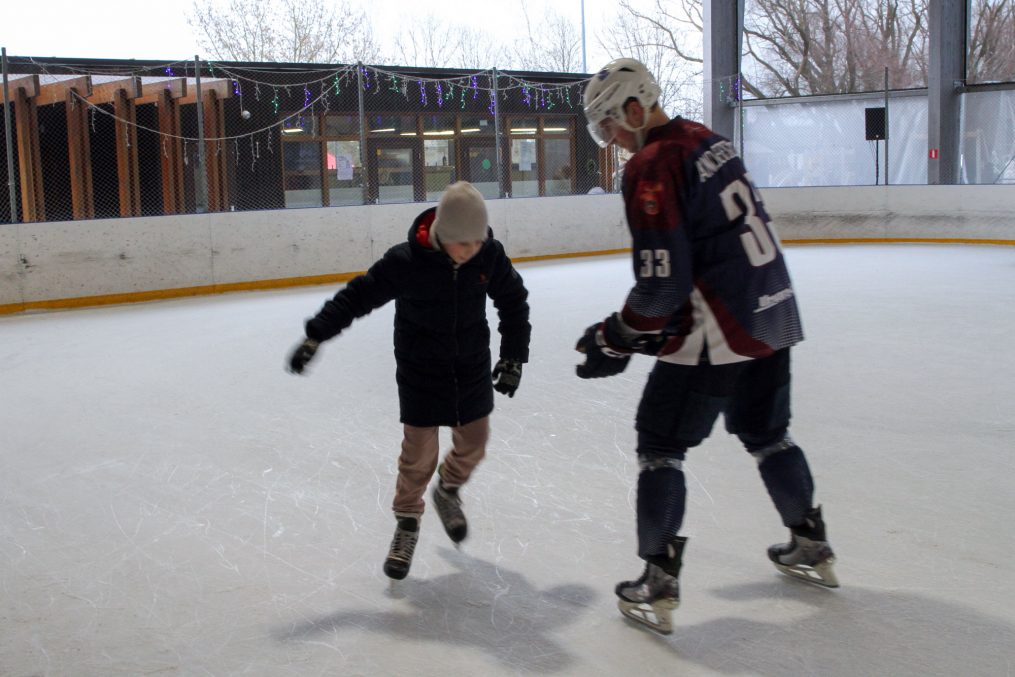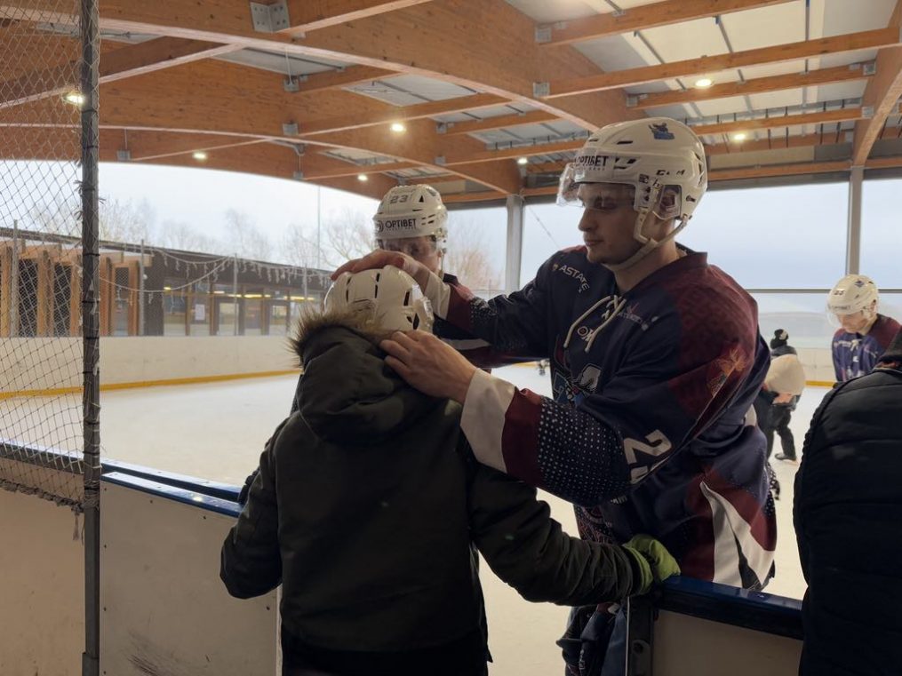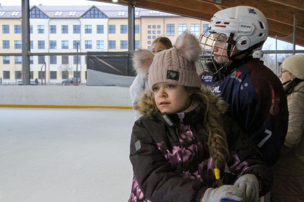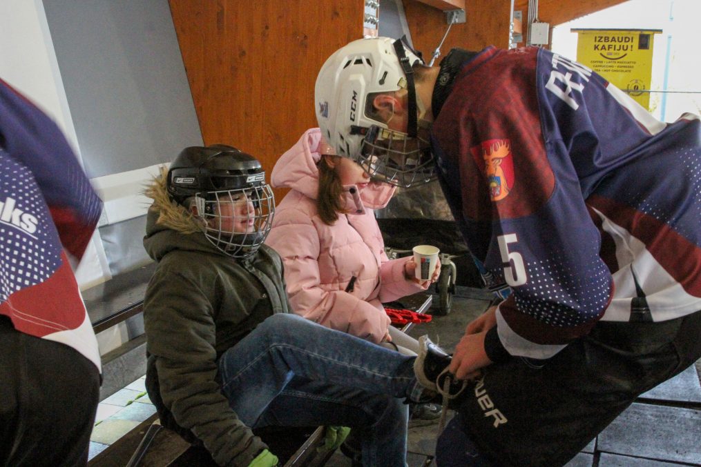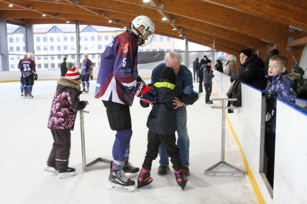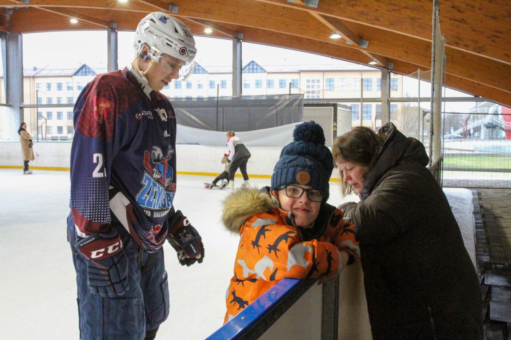 Pirmo reizi uz ledus kāpa arī desmit gadus vecais Edvards. “Līdz pēdējam brīdim neteicu, kas paredzēts šai svētdienai, jo citādi nevarētu sagaidīt. Kad atnācām, mazliet jau bija nobijies, taču hokejisti iedrošināja un šķiet, ka viņam patīk un pat sanāk,” tā Edvarda mamma, pieļaujot, ka pēc šī iedrošinājuma, uz slidotavu varētu atnākt vēl kādu reizi.