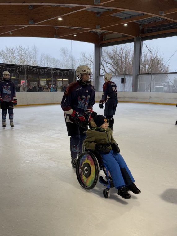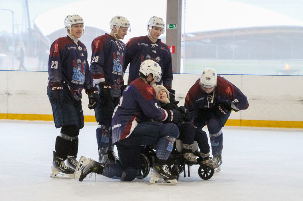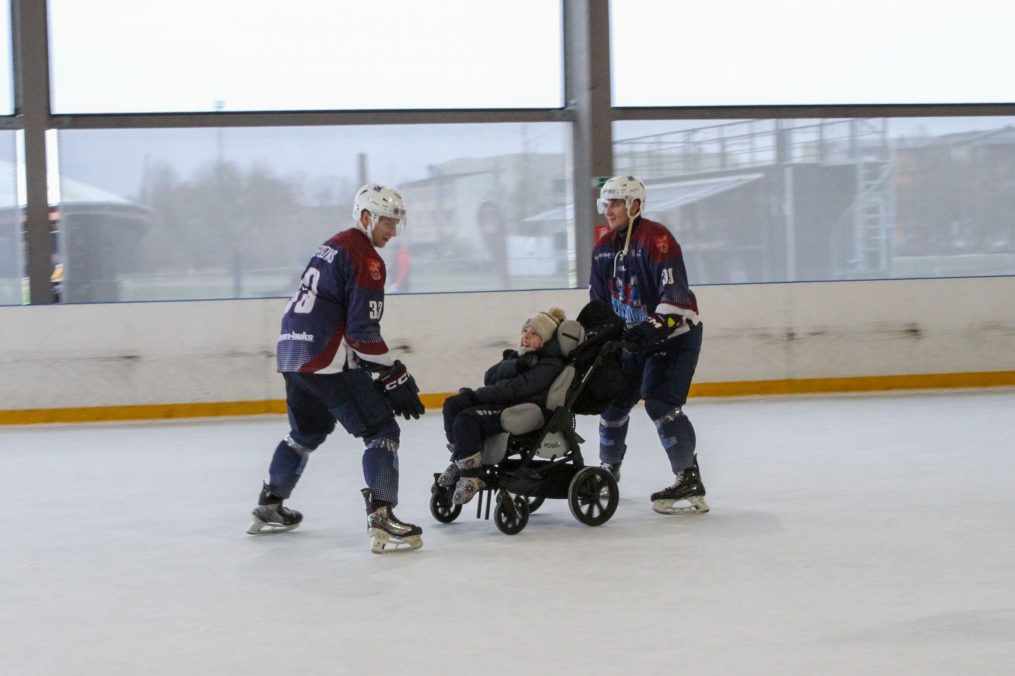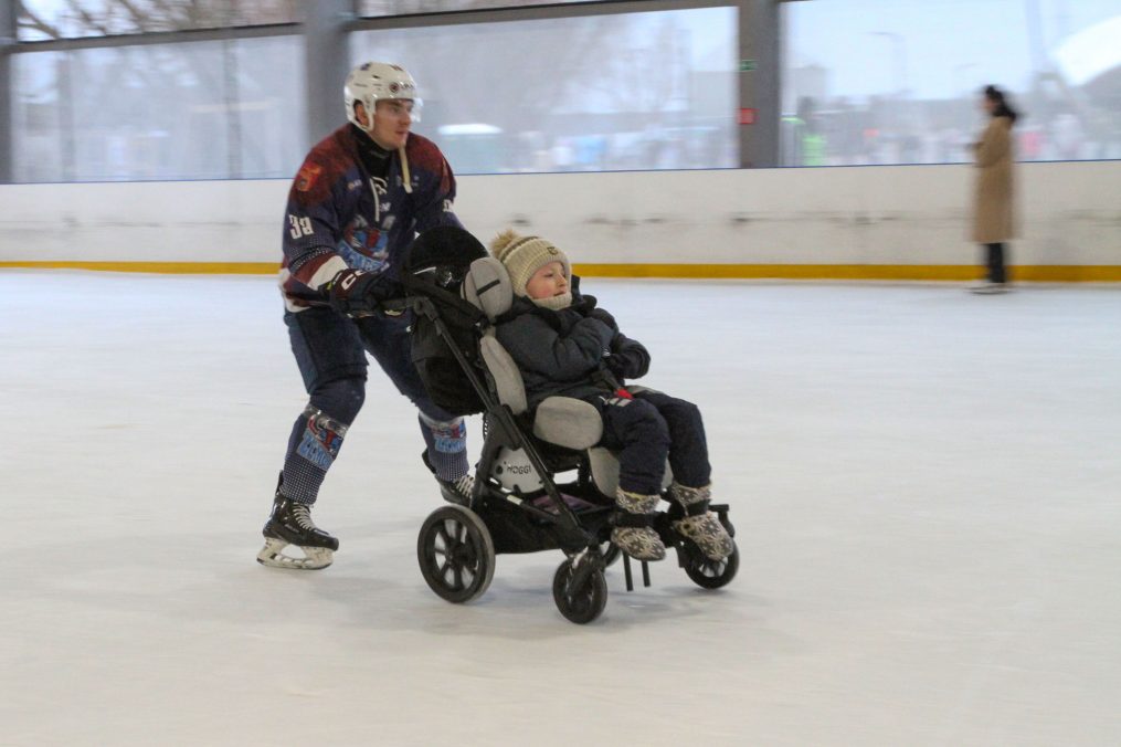 Slidotavas apmeklējums liels piedzīvojums bija arī 11 gadus vecajam Dāvim, kuru pa ledus laukumu ratos vizināja HK “Zemgale” hokejists Artūrs Brikmanis. “Dāvis ir ļoti liels hokeja fans un regulāri skatās hokeju pa TV. Kad ripa trāpa vārtos, viņš teju vai lec no gultas laukā aiz prieka, ja netrāpa – dusmojas. Dāvis nevar runāt un pateikt visu vārdos, taču viņa emocijas un acis pasaka visu. Līdz pēdējam brīdim neteicu, kur šodien dodamies un ko darīsim. Kad atnācām uz slidotavu, viņš ieraudzīja hokejistus, acis tā iemirdzējās… Kad hokejists viņu paņēma vēl slidot, tā bija neizsakāma laimes sajūta,” stāsta Dāvja mamma Dina, sakot milzīgu paldies par doto iespēju. “Mans bērniņš sēž ratos un viņam nav iespēja pašam kustēties, skriet, lēkt, darboties, tāpēc novērtējam šodien doto iespēju kaut pabraukt pa ledu, jo tas sniedz ārkārtīgi daudz pozitīvu emociju un iekrāso viņa ikdienu citādāku,” tā Dāvja mamma.