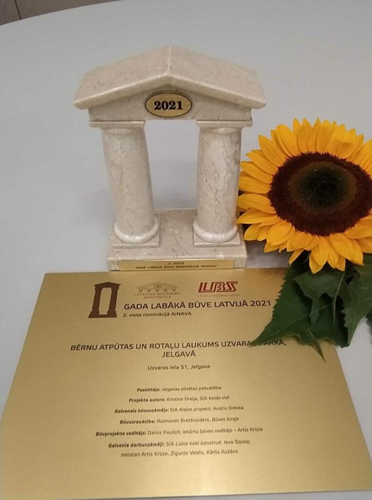 Šodien Mežaparka Kokaru zālē apbalvoti konkursa “Gada labākā būve Latvijā 2021” uzvarētāji. Par otro labāko būvi nominācijā “Ainava” starp pieciem finālistiem atzīta Jelgavas bērnu atpūtas un rotaļu pilsētiņa Uzvaras parkā, informē Jelgavas pašvaldības Sabiedrisko attiecību pārvaldē.