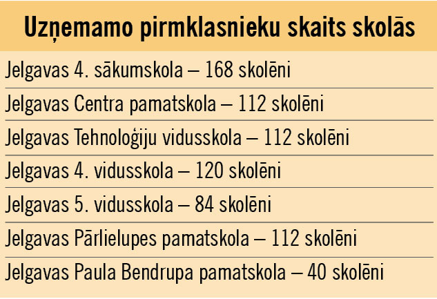 Plānots, ka Jelgavas vispārizglītojošajās skolās 1. klasē nākamajā mācību gadā tiks uzņemti vairāk nekā 740 skolēni.