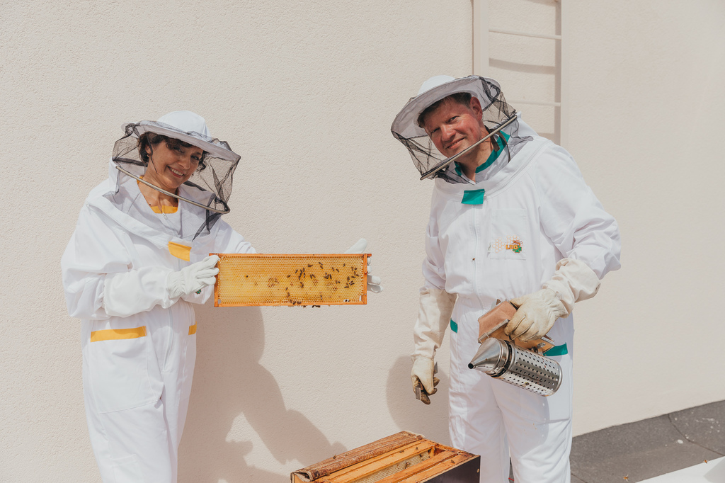Bišu dravā uz Jelgavas poliklīnikas jumta ievākts 21 kilograms medus