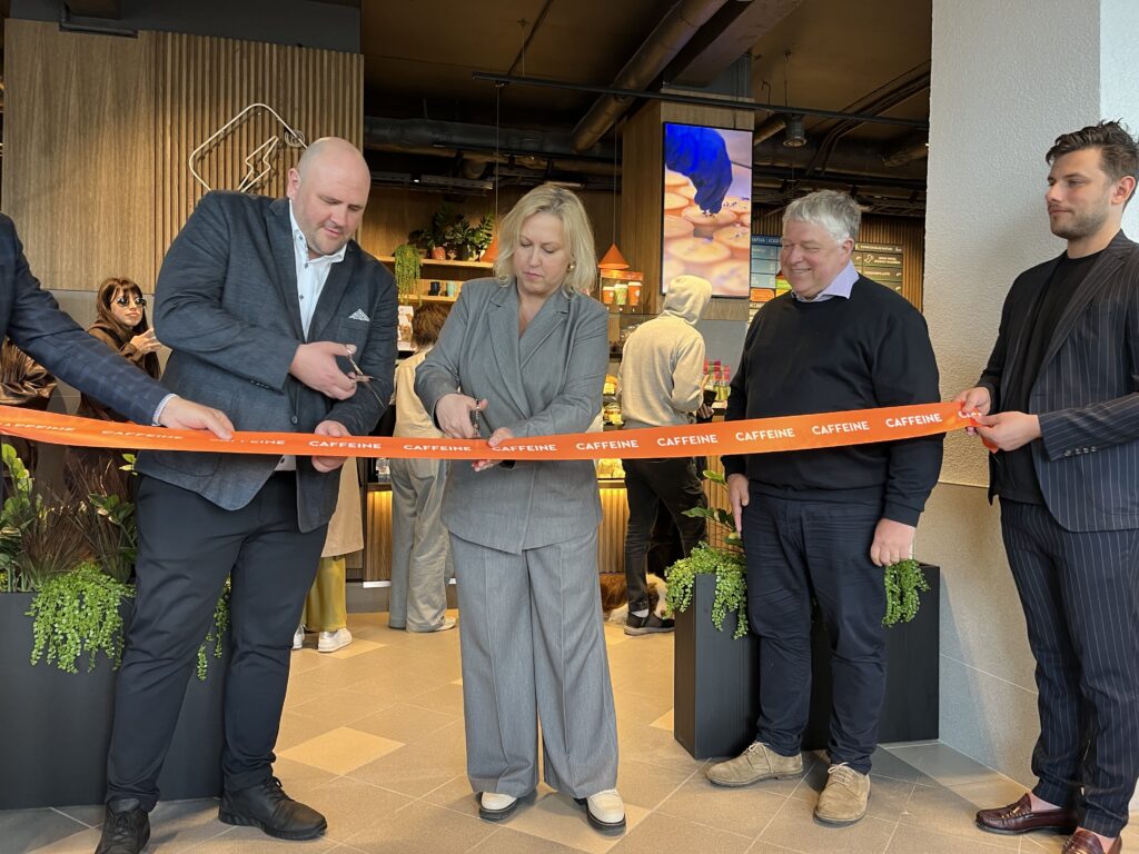 Īsā uzrunā Jelgavas mērs Mārtiņš Daģis sveica uzņēmējus – investorus sakarā ar ienākšanu pilsētā un novēlēja labus panākumus. Savukārt, uzņēmēju pārstāve SIA “Reitan Convenience Latvia” (zīmols “Caffeine”) valdes priekšsēdētāja Dace Dovidenas uzsvēra, ka šī ir trīsdesmitā “Caffeine” kafejnīca. Vairums no tām atrodas Rīgā, taču arī Siguldā, Liepājā un Daugavpilī.