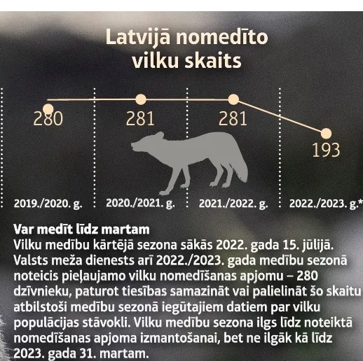 2022. gadā nomedīti trīs vilki (Salgales un Cenu pagastā), Dobeles novadā – četri (Annenieku, Naudītes, Vītiņu pagastā).