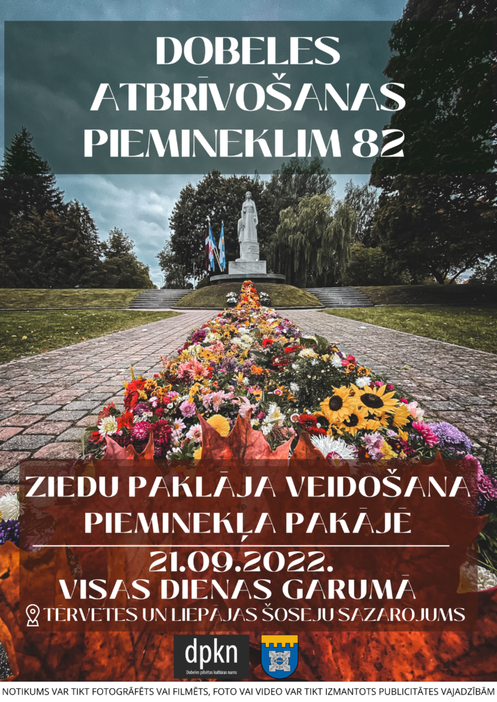 Dobeles pilsētas kultūras nams aicina ikvienu Dobeles novada iedzīvotāju turpināt tradīciju ar ziedu nolikšanu pie Dobeles atbrīvošanas pieminekļa. Iedzīvotāji aicināti sagatavot savus mīļākos ziedus un tikties kopīgā ziedu ceļa veidošanā. Ziedu paklāja veidošanā aicina piedalīties visas dienas garumā.