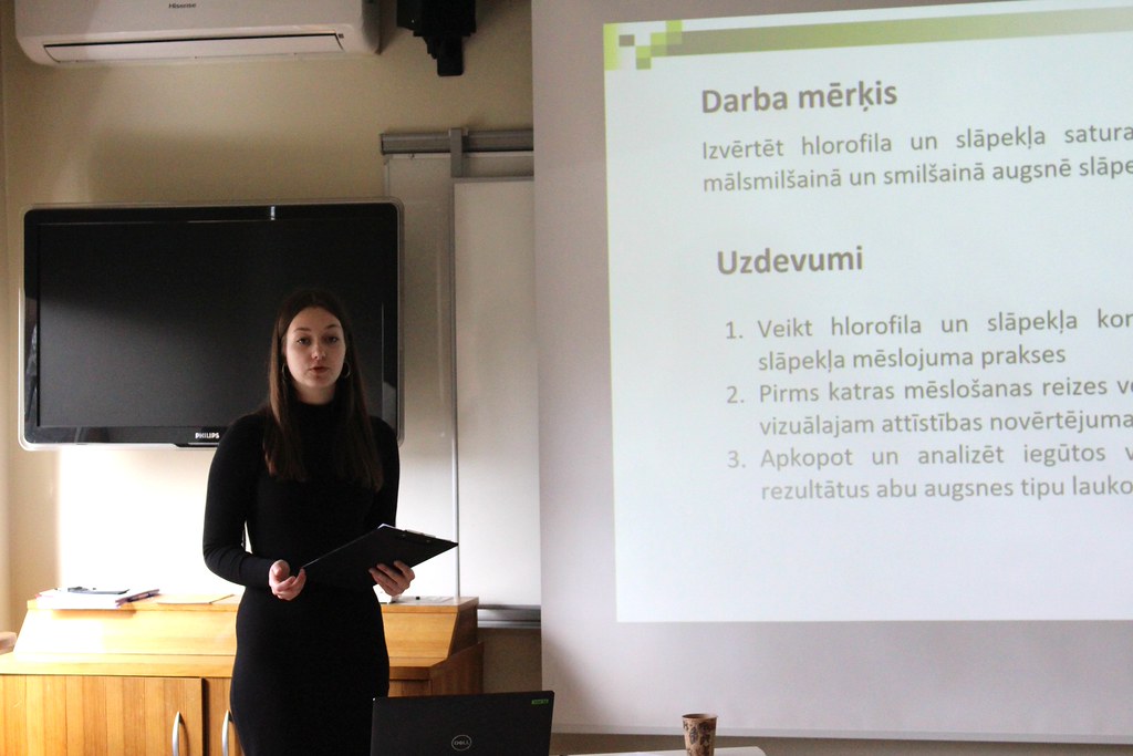 Pētniecības darbu grupā 1. vietu ieguva Dobeles Valsts ģimnāzijas skolniece Rēzija Dišteina, kura pētīja hlorofila un slāpekļa izmaiņas ziemas kviešu šķirnē “Skagen” dažādos augsnes tipos un mēslošanas apstākļos. Otrā vieta piešķirta Zintim Silovam par saules paneļu novietojuma ietekmes analīzi Latvijas klimatā, bet trešā – Aleksandram Bargatinam, kurš prezentēja darbu “Ērču sugu izplatība un Babeziozes riska novērtējums mājdzīvniekiem dabā savāktajās ērcēs (AS “LVM dabas parkā Tērvetē”).