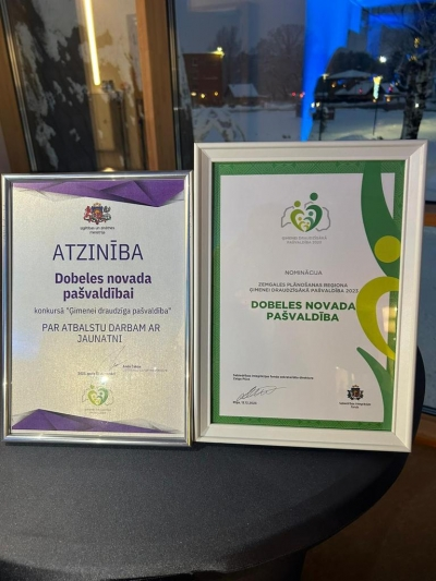Dobeles novada pašvaldība vakar, 12. decembrī Ropažos saņēmusi divus pagodinošus diplomus – “Par atbalstu darbam ar jaunatni” un “Zemgales Plānošanas reģiona Ģimenei draudzīgākā pašvaldība 2023”.
