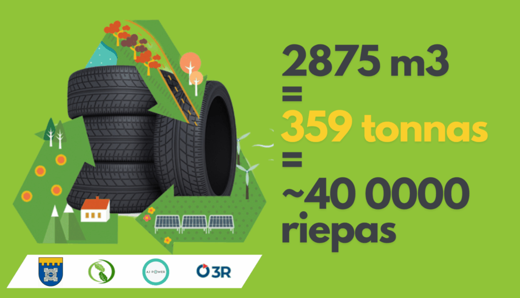 Lai ilustrētu savākto riepu daudzumu, pašvaldība norāda, ka 40 000 riepu veido 10 tūkstošus komplektu – ja šīs riepas krautu vienu uz otras, izveidotos tornis, kura augstums sasniegtu 21,6 kilometrus, kas ir augstāk par komerciālo pasažieru lidmašīnu lidojuma līmeni. Ja riepas sakrautu divu metru augstumā, tās pilnībā pārklātu Dobeles tirgus laukumu, kas atbilst aptuveni trešdaļai futbola laukuma, piekrautai ar riepām līdz krūtīm. Šāds riepu daudzums spētu nodrošināt gumijas segumu vairākiem sporta un bērnu rotaļu laukumiem.