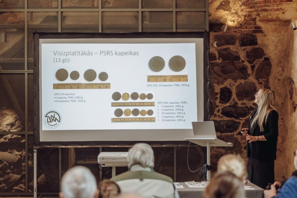 Dobeles novada muzeja vēsturniece Undīne Krūze sanākušos iepazīstināja ar jaunieguvumiem muzeja numismātikas kolekcijā. Konsultējoties ar Latvijas Nacionālā vēstures muzeja numismātikas nodaļu, identificētas teju visas uzraudzības un izrakumu laikā iegūtās monētas. Dobeles novada muzeja krājumā līdz šim senākā monēta, Osnabrikā kaltais biskapa Buldvina fon Russela (1259-1264) laika feniņš, nu zaudējis savu “vecākās monētas” statusu. Pēc šī gada izrakumiem secināts, ka kolekcijai nu piepulcējas senāka, arī Osnabrikā kalta monēta – Engelberta I (1239-1250) laika denārs.