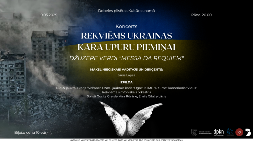 9. maijā pulksten 20 Dobeles pilsētas Kultūras namā (DPKN) izskanēs koncerts “Rekviēms Ukrainas kara upuru piemiņai”, informē DPKN.