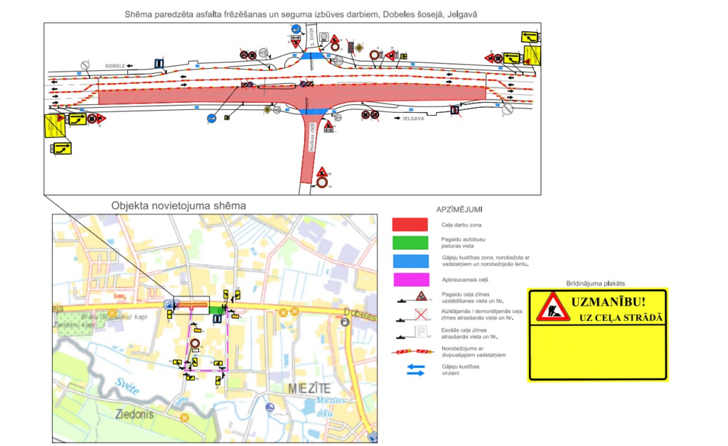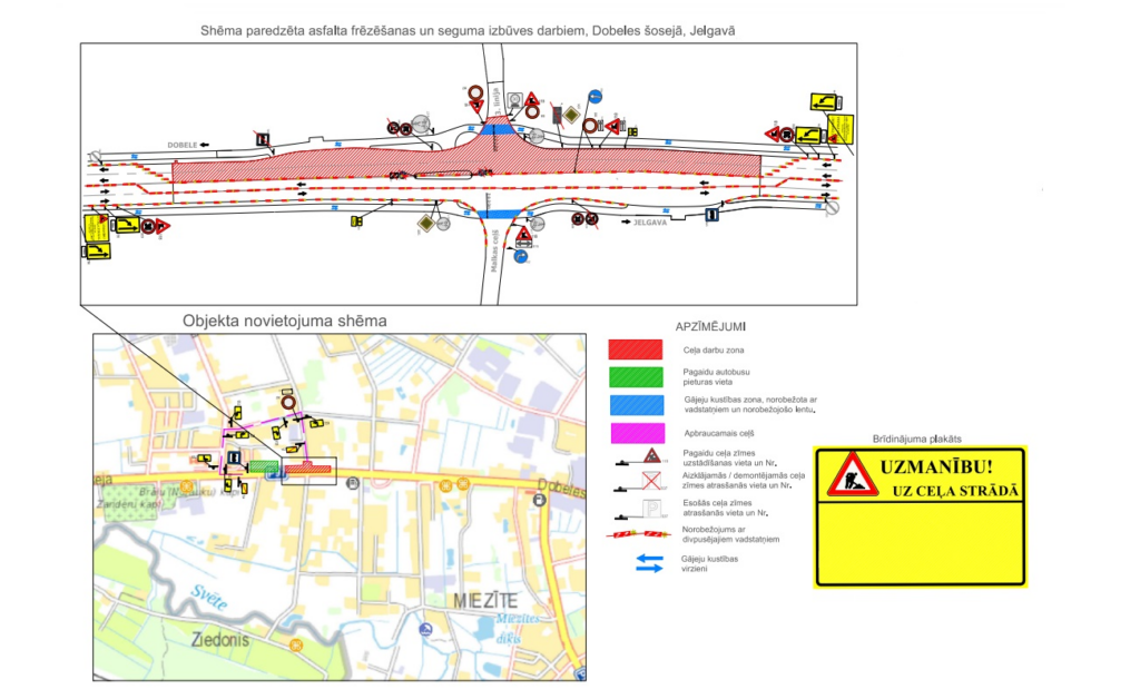 Satiksmes ierobežojumi Dobeles šosejas posmā no Vangaļu ceļa līdz Zīles ceļam būs līdz 11. oktobrim. Satiksmes dalībnieki aicināti ņemt vērā izvietotās ceļa zīmes un saskaņotās satiksmes organizācijas shēmas, kā arī rēķināties ar papildu laiku ceļā. Iedzīvotājiem Dobeles šosejas būvdarbu zonā piekļuve īpašumiem tiks nodrošināta.