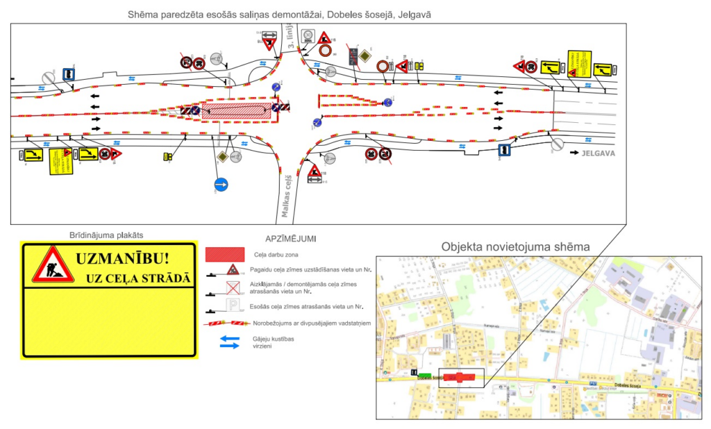 Dobeles šosejas, 3. līnijas un Malkas ceļa krustojumā būs luksofors; noteikti satiksmes ierobežojumi