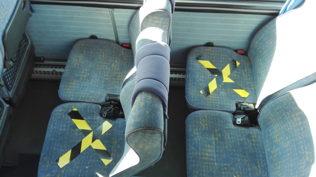 Tāpat sabiedrisko transportlīdzekļu ietilpība nedrīkst pārsniegt 80%, bet pieturvietās ārpus reģionālās nozīmes maršrutu galapunktiem, ja nepieciešams uzņemt pasažierus, ietilpība noteikta 85% apmērā. Ja pārvadātājam transportlīdzekļa specifikas dēļ nav iespējams kontrolēt pasažieru iekāpšanu un izkāpšanu, transportlīdzeklī jābūt marķētām sēdvietām, nodrošinot distancēšanās prasību ievērošanu.