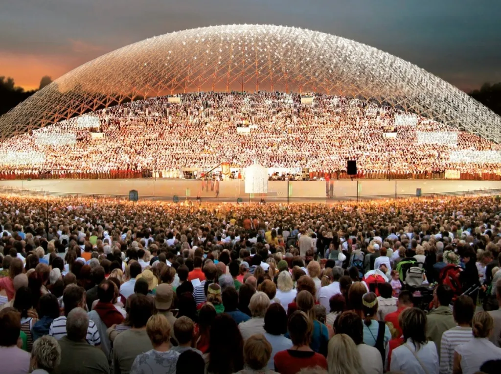 Mežaparka Lielās estrādes rekonstrukcija paredzēja uzlabot akustiku, izmantojot sfēriskus akustiskos paneļus. Tika meklēts risinājums, kā no bieza koka izgatavot 510 vairogus ar sfērisku liekumu, turklāt 16 dažādos izmēros, lielākie vairogi – ar četru metru diagonāli, stāsta koka būvkonstrukciju ražošanas uzņēmums “ZAZA TIMBER Production”.