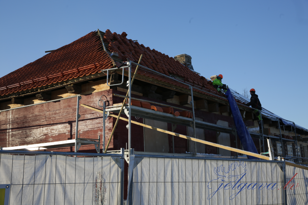 Šonedēļ Vecpilsētas ielas 2 ēkā Jelgavā notiek māla dakstiņu jumta klāšana. Atjaunotajai ēkai jau ir ielikti logi, turpinās iekšējo komunikāciju izbūve un tuvākajā laikā tiks uzsākti iekštelpu apdares darbi.