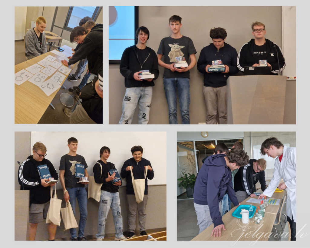 Jelgavas Tehnoloģiju vidusskolas komanda “5,5 muskatieri” konkursā “Eksakto zinātņu diena” ieguvuši pirmo, informē Jelgavas Izglītības pārvalde.