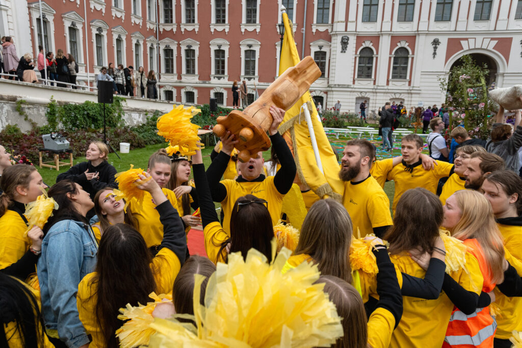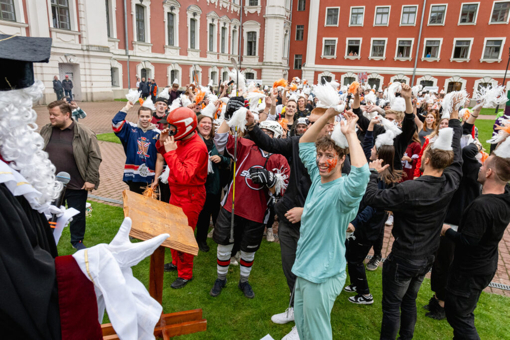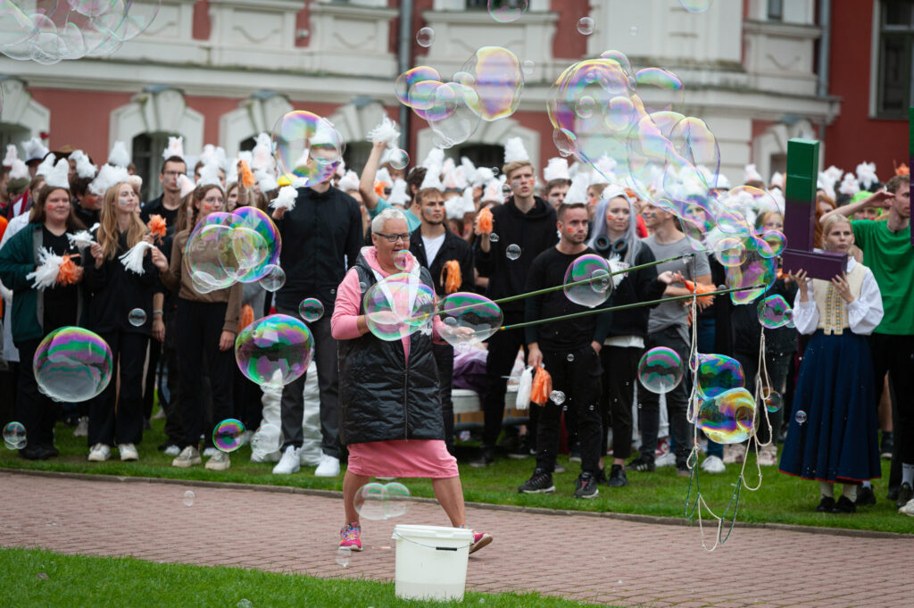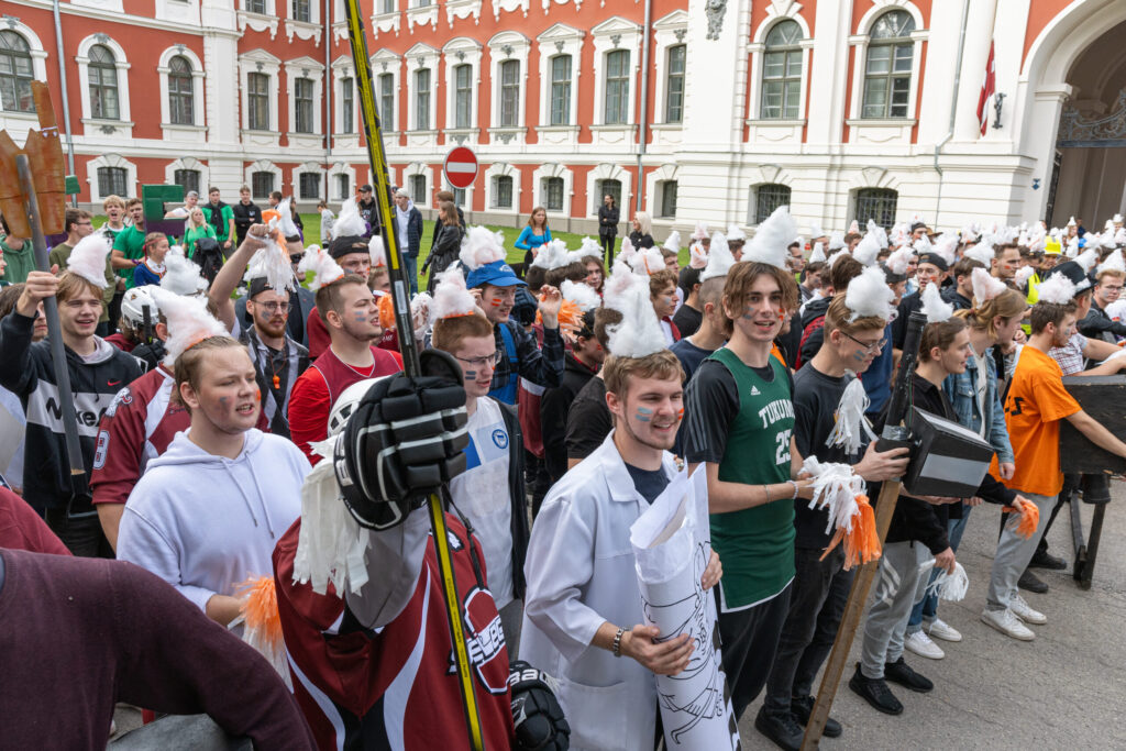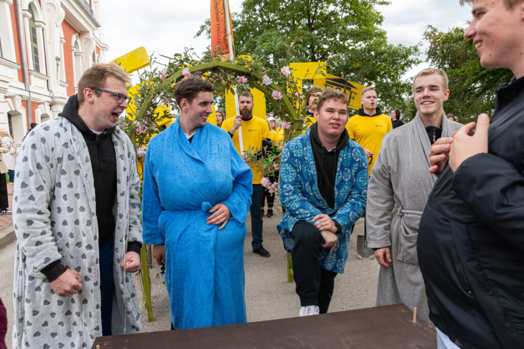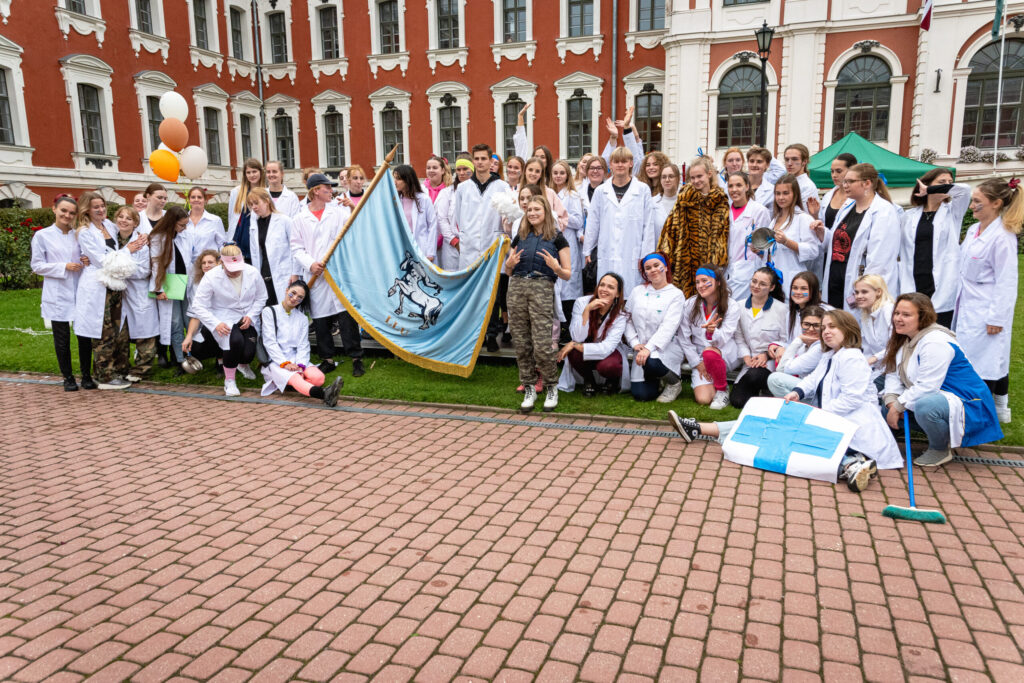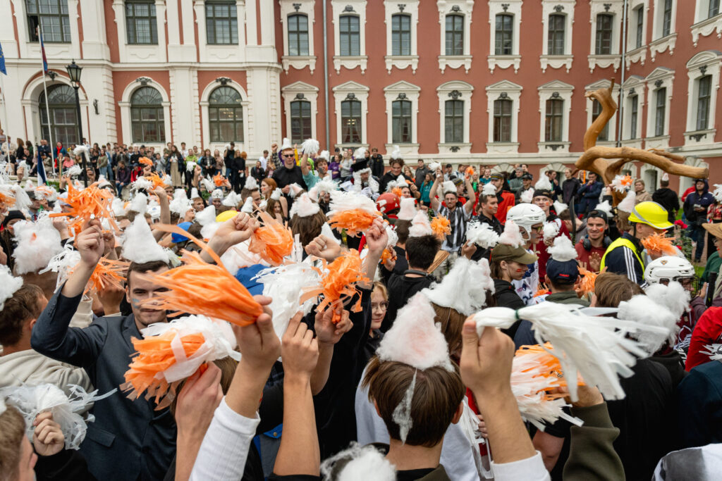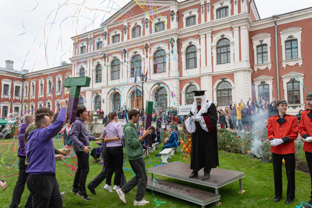 Pirmdien Jelgavas pils pagalmā aizvadīti 56. Azemitologa svētki jeb pirmkursnieku uzņemšana Latvijas Biozinātņu un tehnoloģiju universitātes (LBTU) studentu saimē.