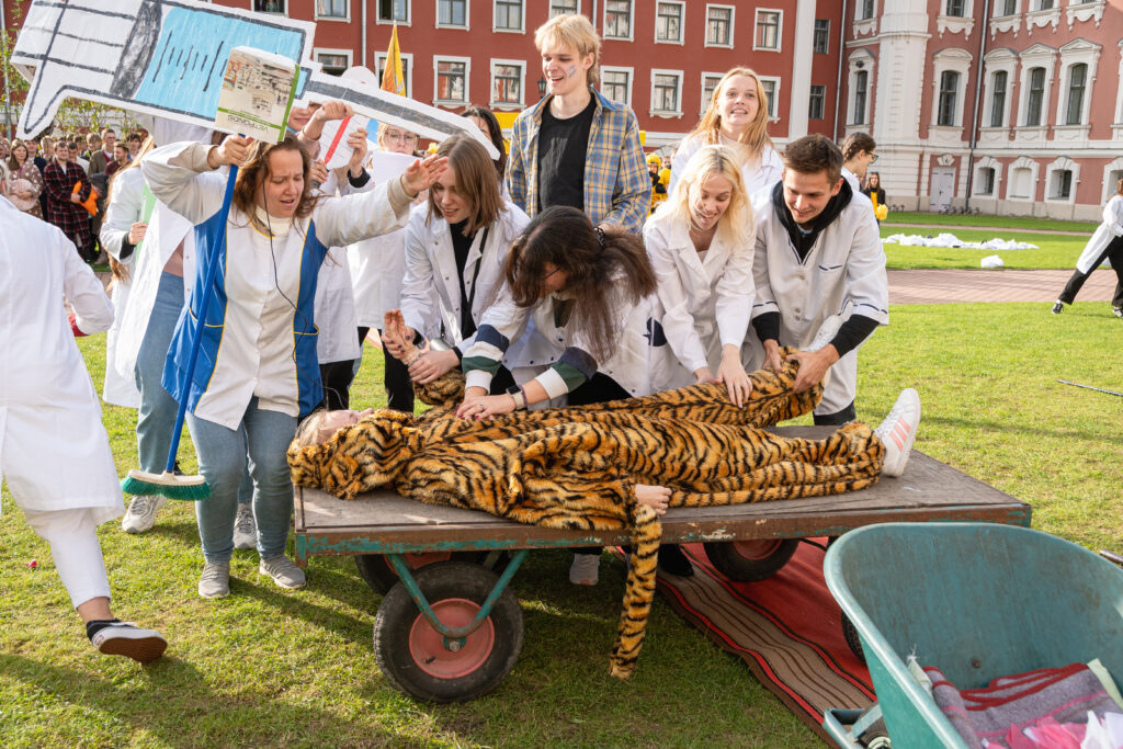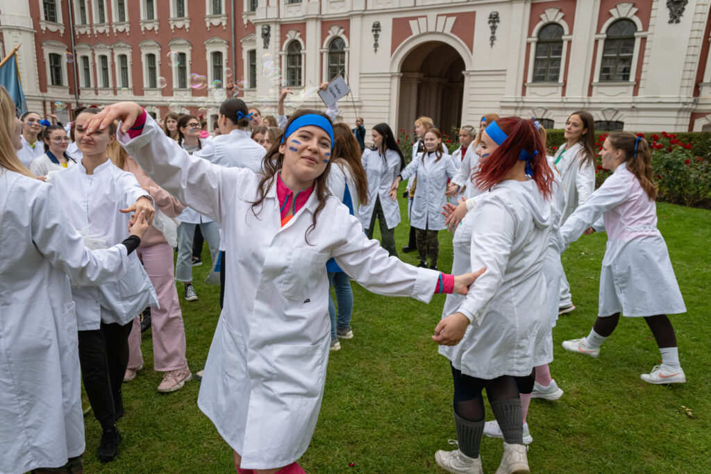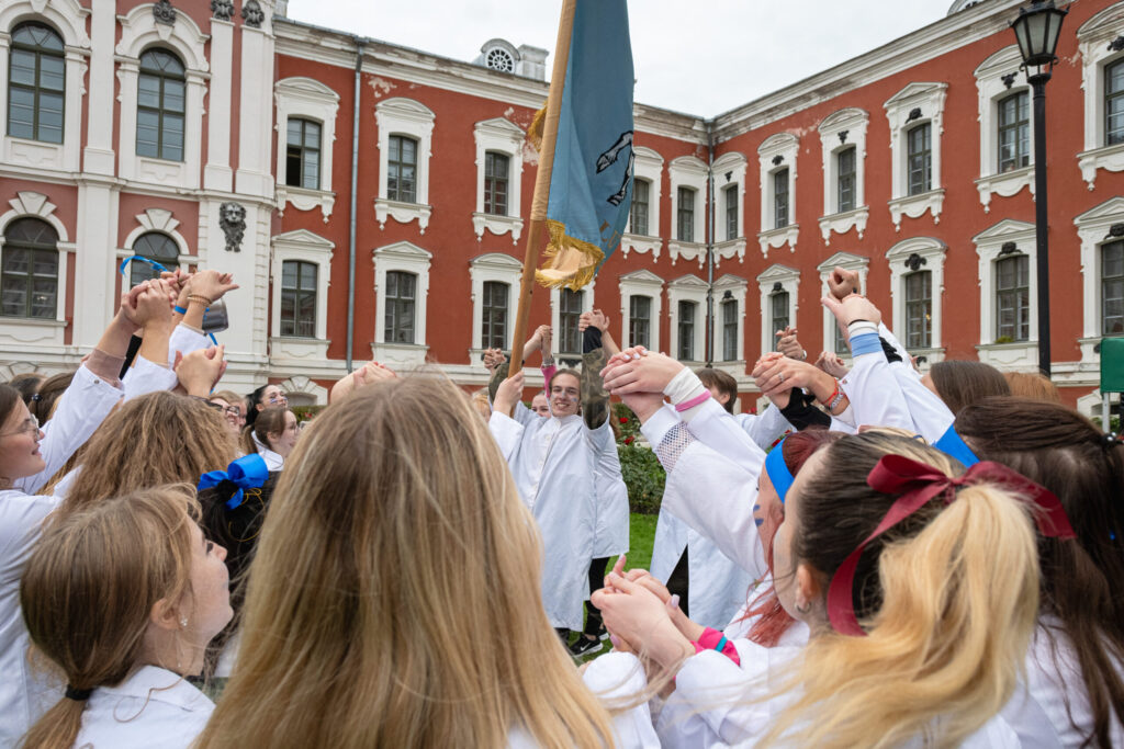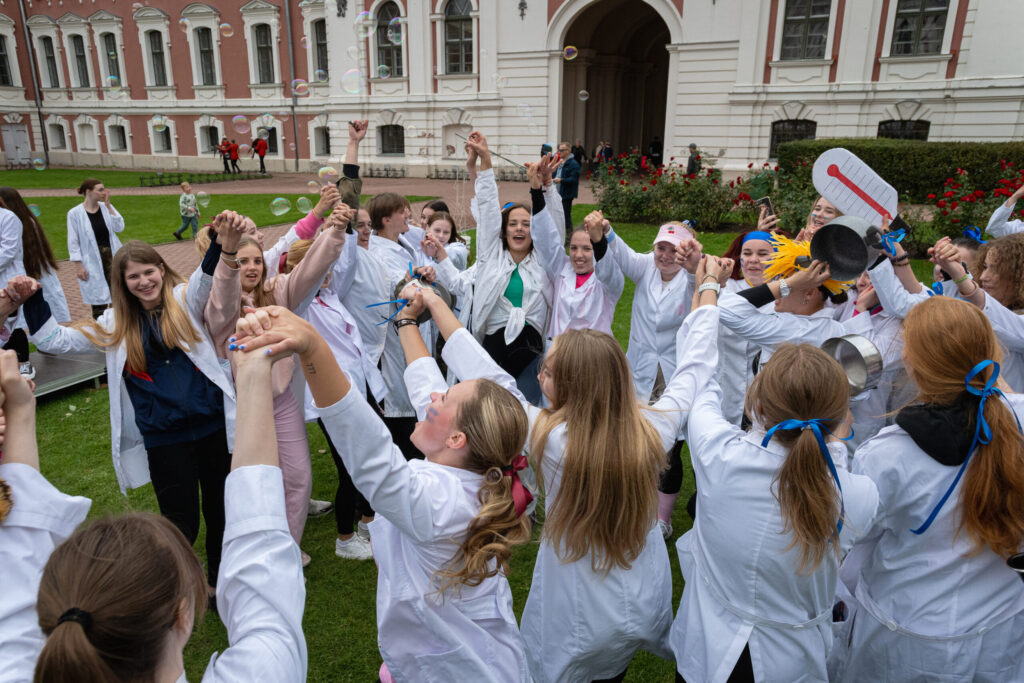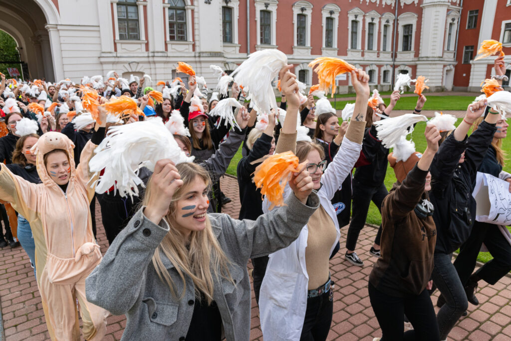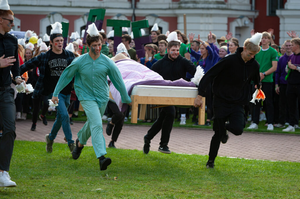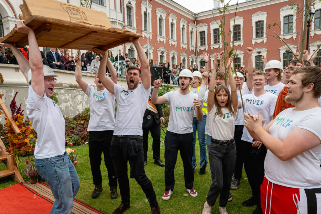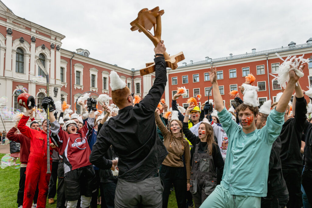 Pirmdien Jelgavas pils pagalmā aizvadīti 56. Azemitologa svētki jeb pirmkursnieku uzņemšana Latvijas Biozinātņu un tehnoloģiju universitātes (LBTU) studentu saimē.