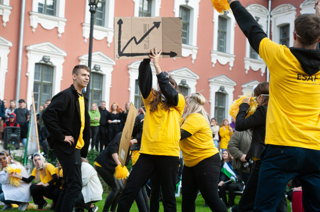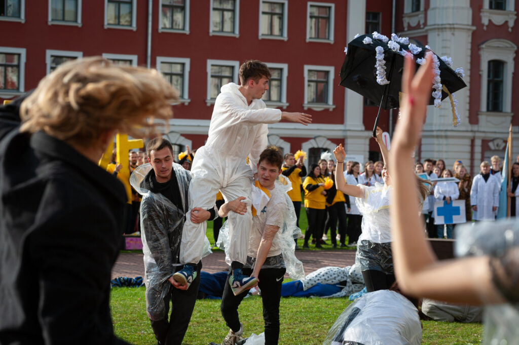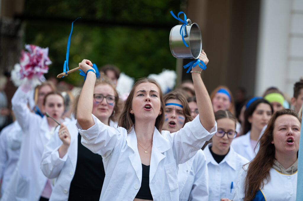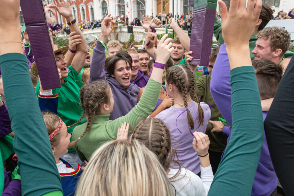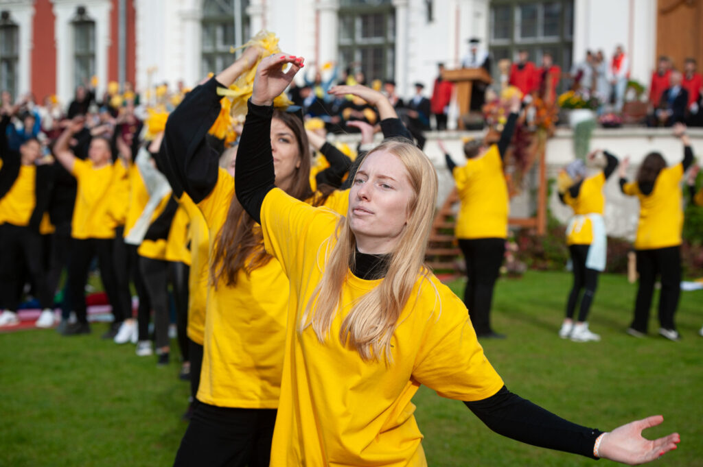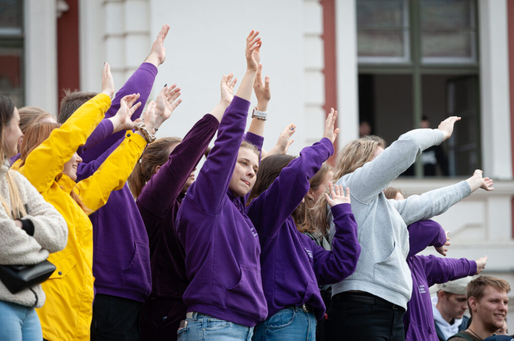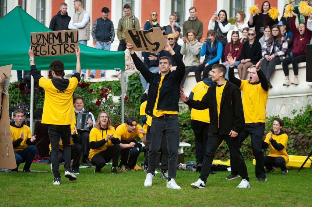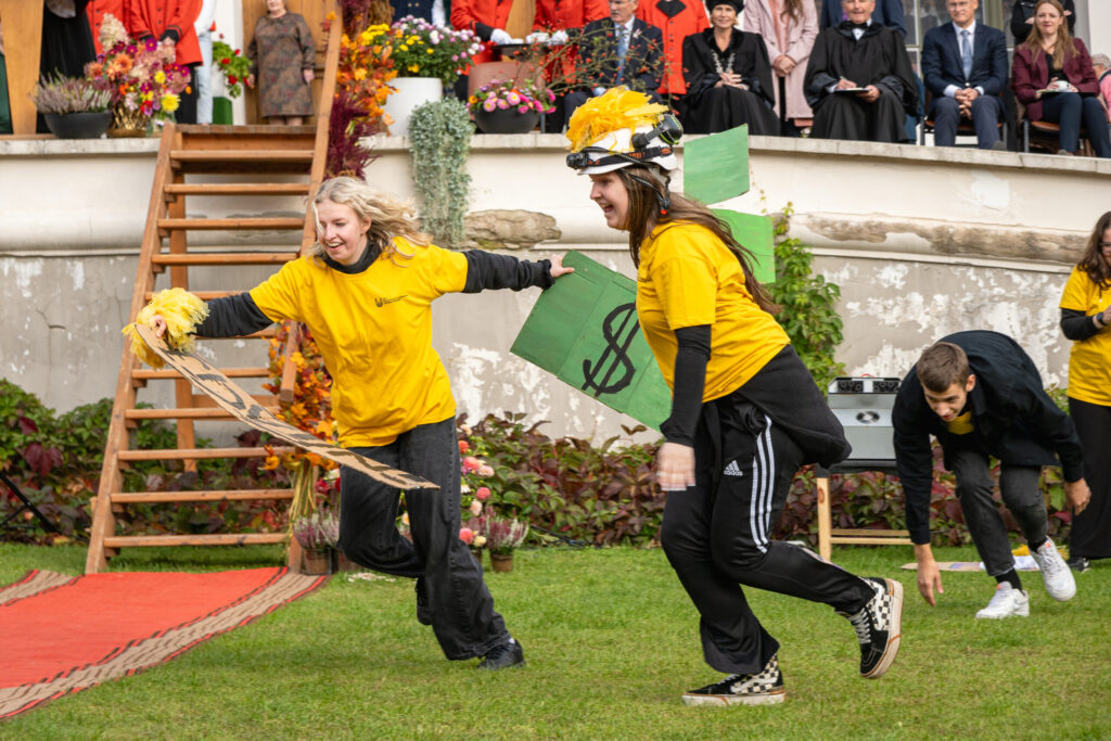 Pirmdien Jelgavas pils pagalmā aizvadīti 56. Azemitologa svētki jeb pirmkursnieku uzņemšana Latvijas Biozinātņu un tehnoloģiju universitātes (LBTU) studentu saimē.