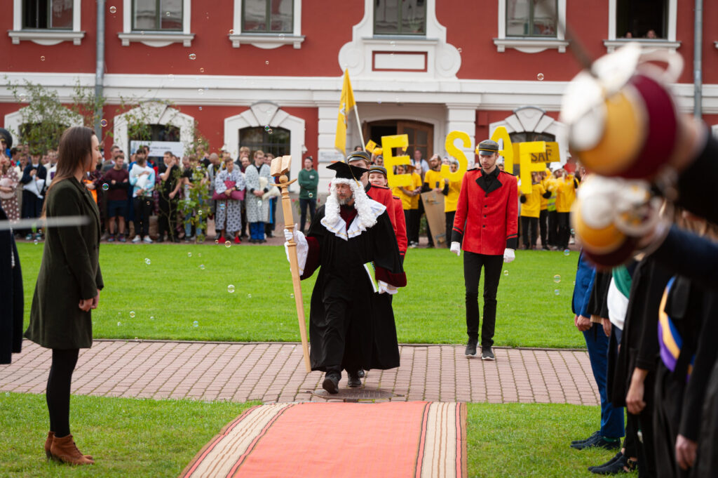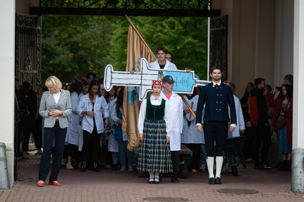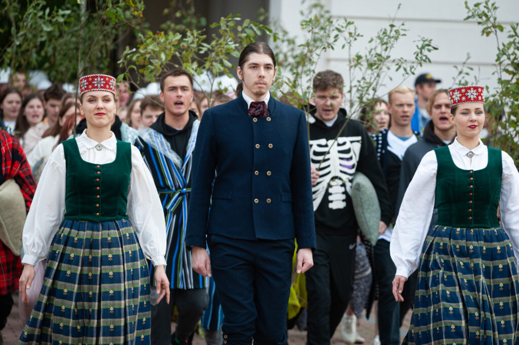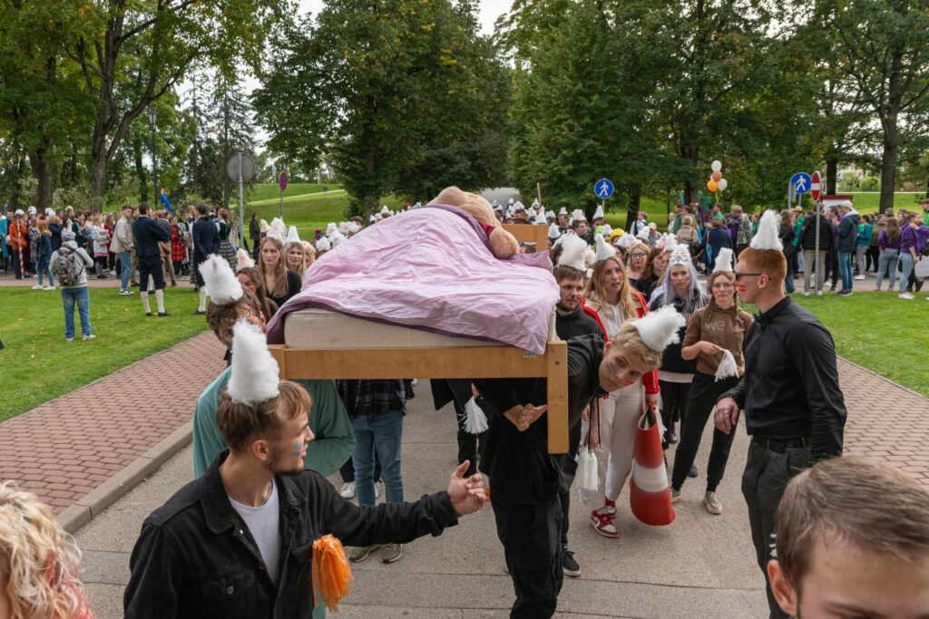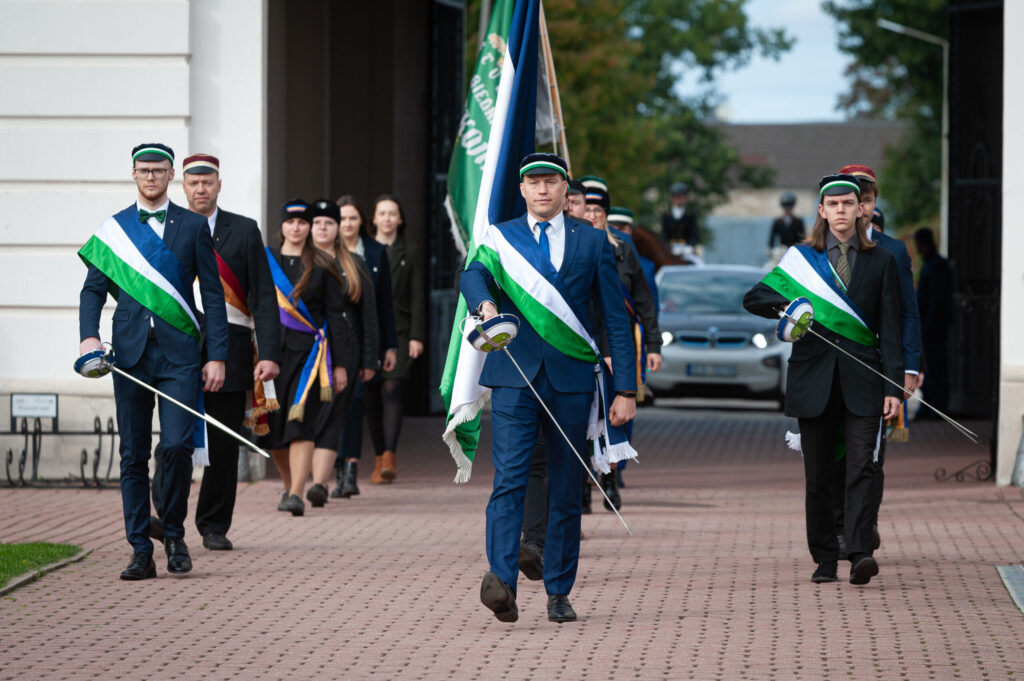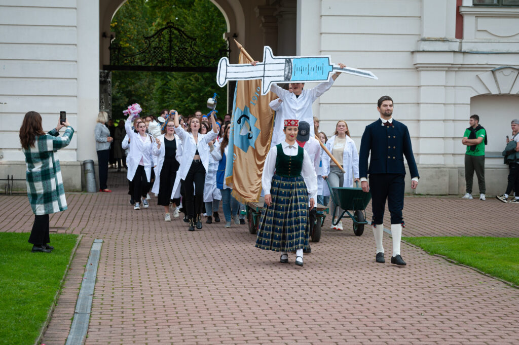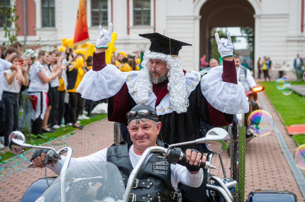 Pēcpusdienā pirmkursnieki izgāja ielās, lai soļotu uz Jelgavas pils pagalmu. Zinību vīrs Azemitologs, kuru jau astoto reizi atveidoja Latvijas Lauku konsultāciju un izglītības centra direktors Kaspars Žūriņš, pirmo reizi pasākumā ieradās elektroauto, nevis zirgu pajūgā.