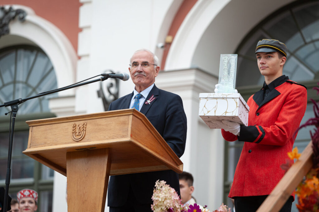 Jāpiebilst, ka svētkos pirmo reizi pasniegta arī Jelgavas valstspilsētas ceļojošā balva, kuru saņēma Veterinārmedicīnas fakultātes (VMF) pirmkursnieki.