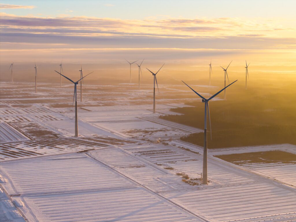 ZIEMAS SKATI no drona vēja parkā 2026. gada janvārī.