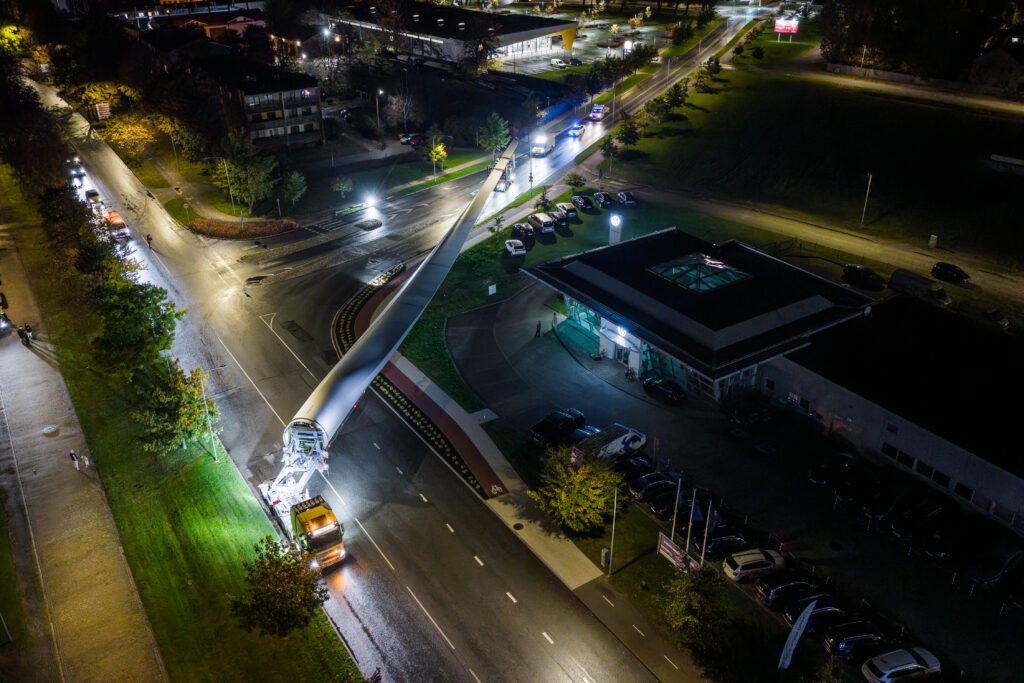 KAIGU PURVS pirms vēja parka būvniecības 2024. gada rudenī.PURVĀ izbūvēts ceļu tīkls aptuveni 14 kilometru garumā.VĒJA turbīnu pamati ir 26 metru diametrā un četru metru dziļumā zem zemes.TURBĪNU SPĀRNIun torņu metāla daļas, atvestas uz Ventspils ostu, gaida izkraušanu no kuģa.VĒJA PARKA turbīnu torņu dzelzsbetona daļu konstrukcijas – kopā 528 dažāda izmēra konstrukcijas – atvestas no Ropažu novada uzņēmuma “Consolis Latvija”, kur tās ražotas. FOTO: “LAFLORA”KAIGU PURVĀ vienlaikus strādāja divi megaceltņi, kas varēja uzcelt torņus un turbīnu spārnus 179 metru augstumā.IK DIENU būvlaukumā strādāja vairāk nekā 100 darbinieku, daždien pat 250 speciālistu, no Latvijas, Lietuvas, Polijas, Vācijas, Spānijas, Portugāles, Lielbritānijas, Rumānijas un pat Brazīlijas.PIRMOS SPĀRNUSno Ventspils ostas uz purvu atveda septembra vidū. Lai netraucētu satiksmei, visus 48 spārnus piegādāja naktīs.
