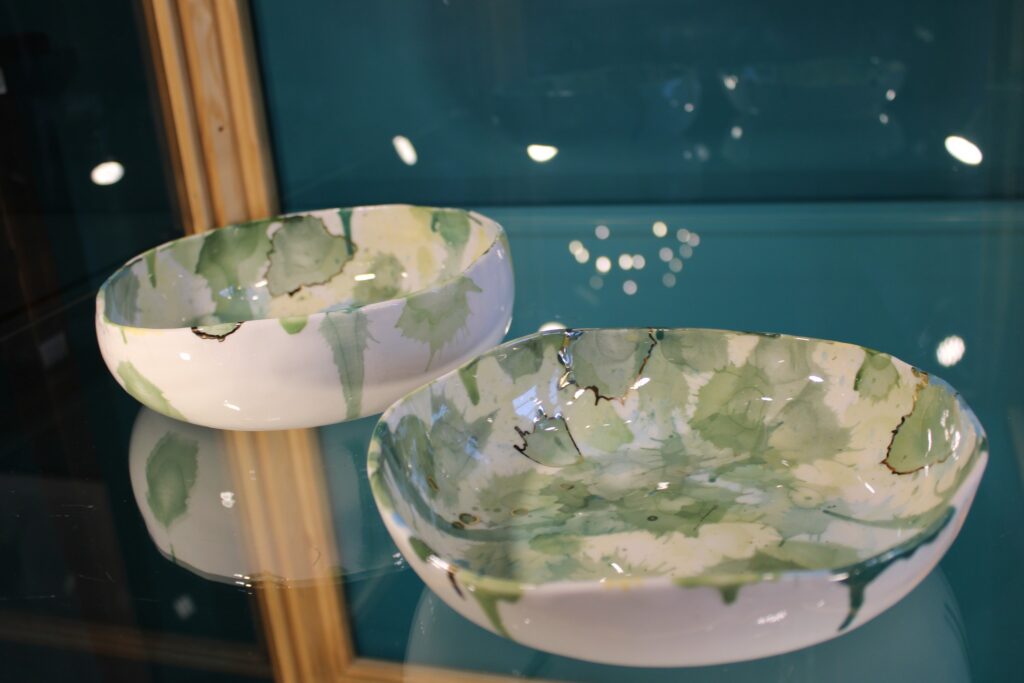 Krūzes, šķīvji, bļodas un vāzes – tie ir galvenie autores lietišķās mākslas veidotie priekšmeti. Izstādē apskatāmie darbi ir veidoti porcelānā ar dažādu dekoratīvo stilistiku