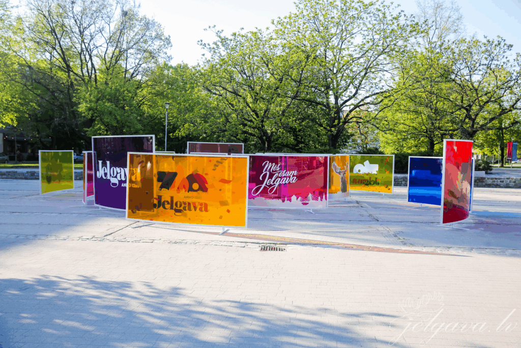 Sasaucoties ar 760. dzimšanas dienas identitāti un svētku gājiena devīzi “Iezīmē Jelgavu krāsās!” arī vides objekts veidots krāsains. Tas sastāv no 14 liektām plaknēm Jelgavas svētku krāsās – tumši zilā, violetā, rozā, oranžā, dzeltenā un sarkanā. Plaknes apdrukātas ar Jelgavai raksturīgajiem un svētku motīviem. Svētku noskaņai, vides objektu papildinās muzikālais noformējums – skanēs Jelgavai veltīti skaņdarbi. Krāsainā vides objekta kopējais garums un platums ir aptuveni deviņi metri.